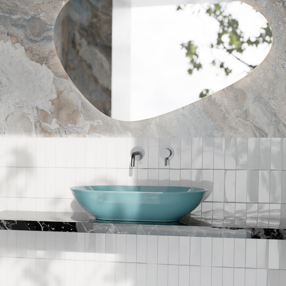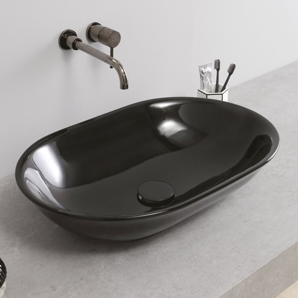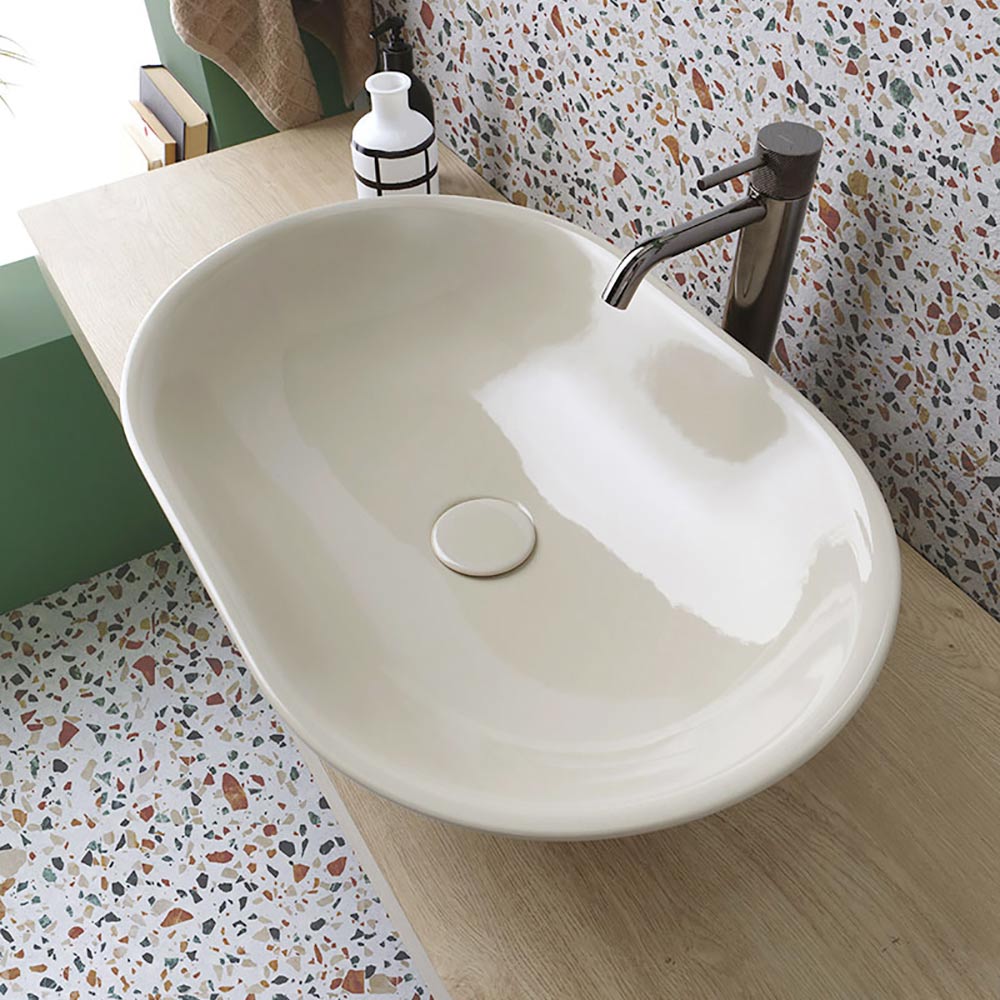 Lavabo da appoggio dalla forma ovale in ceramica colorata finitura lucida realizzato attraverso una produzione artigianale 100% Made in Italy. Linee morbide e armoniose caratterizzano il design di questo raffinato lavabo da bagno dall'estetica semplice e versatile. La sua forma infatti si adatta perfettamente a qualsiasi contesto stilistico moderno portando con sè un tocco esclusivo capace di completare l'arredamento della zona bagno in maniera unica e all'avanguardia. Ad arricchire l'estetica del lavabo sono le meravigliose colorazioni proposte che assicurano un risultato ricercato nonostante uno stile sobrio ed elegante.