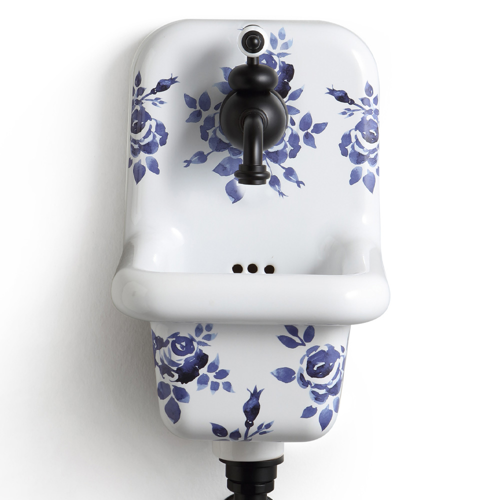 Lavabo sospeso in ceramica colorata a fantasia, stile vintage.
