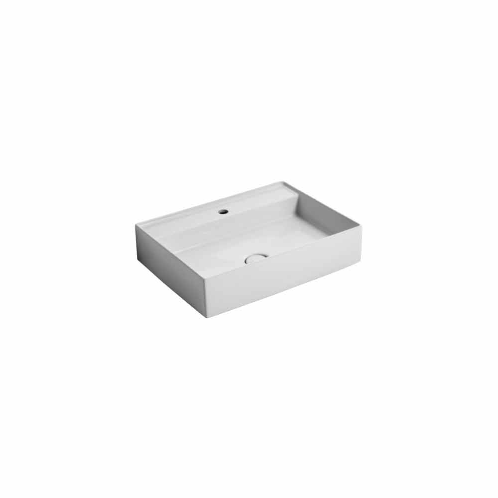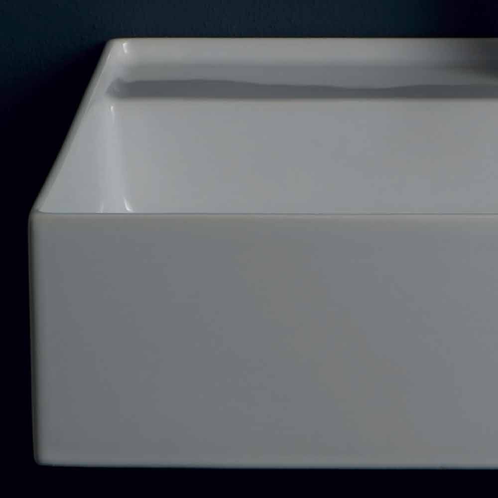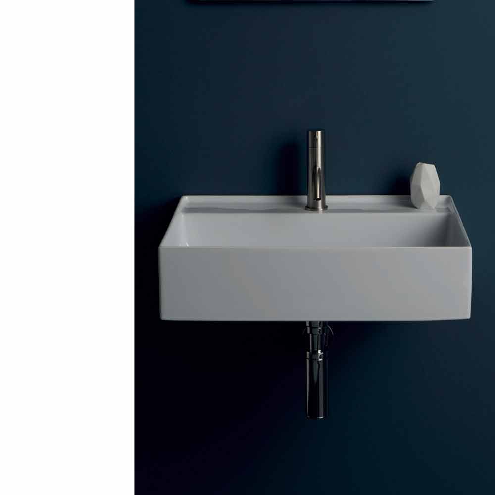 Lavabo sospeso in ceramica design moderno Sun 60x45 cm, made in Italy