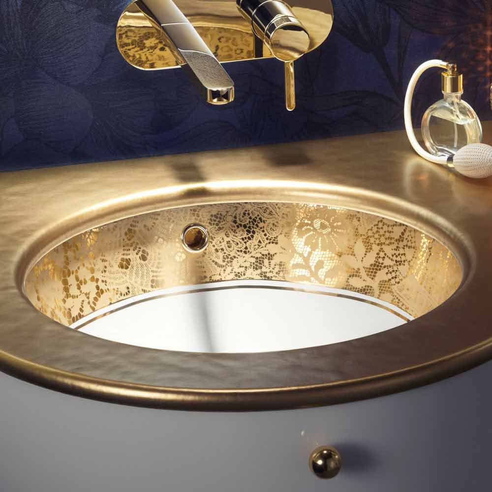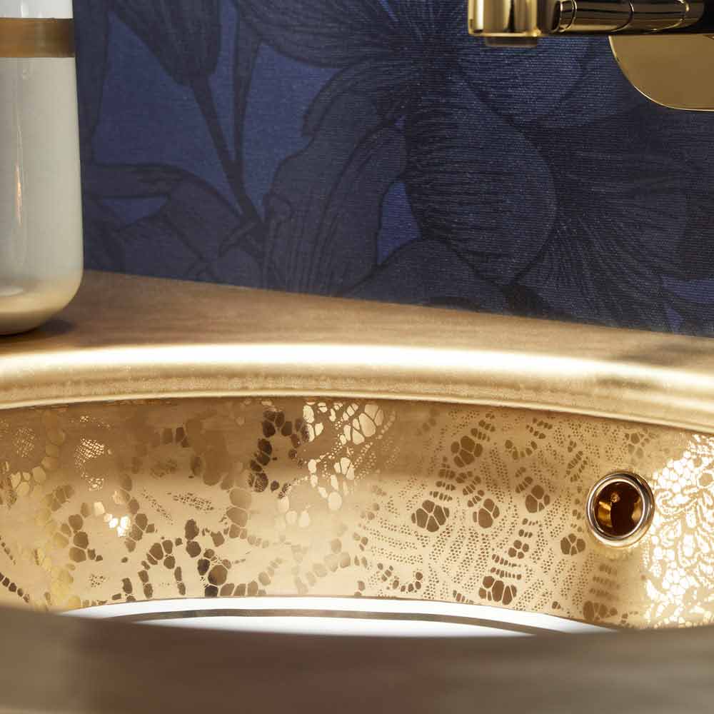 Lavabo sottopiano in fire clay e oro prodotto a mano in Italia, Egeo
