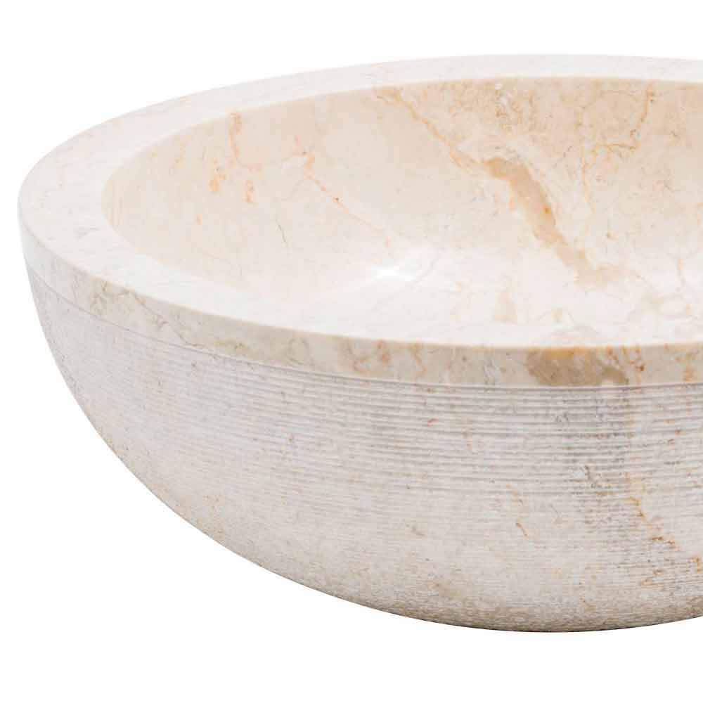Lavandino moderno da appoggio circolare in marmo bianco, Budoni