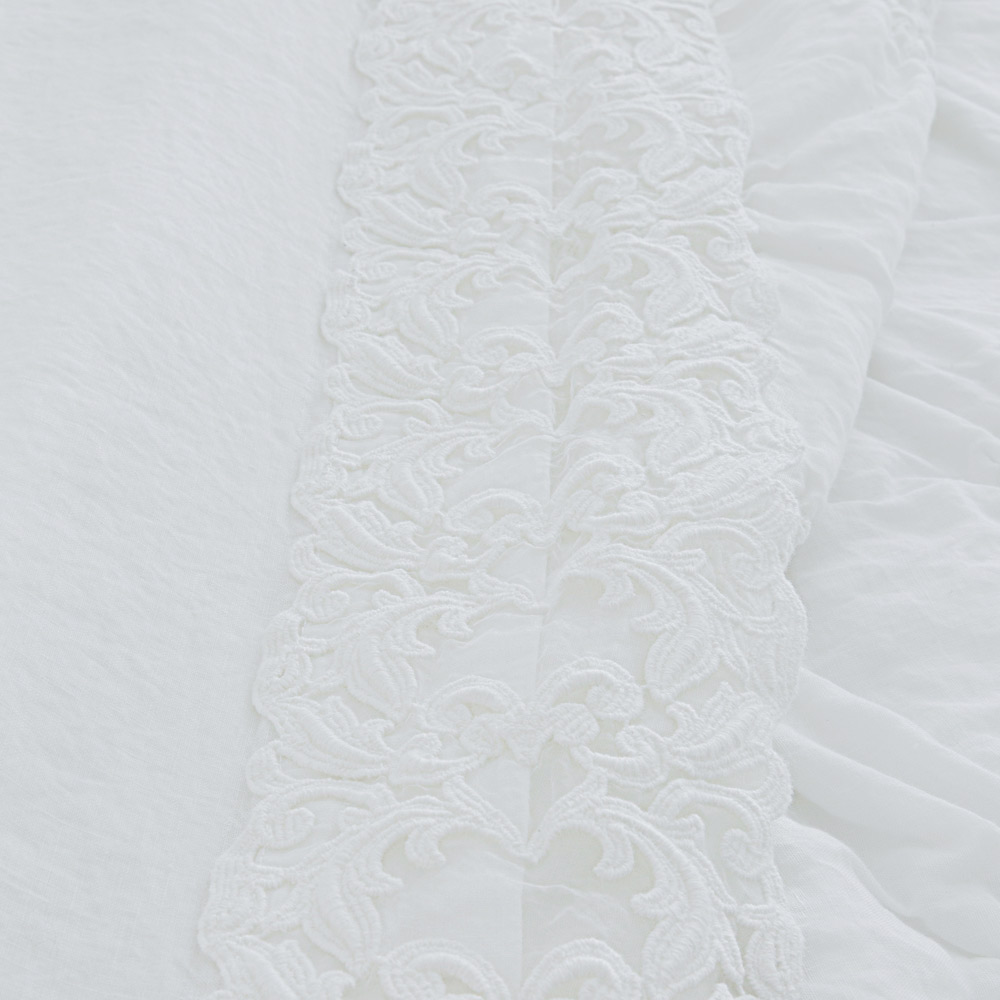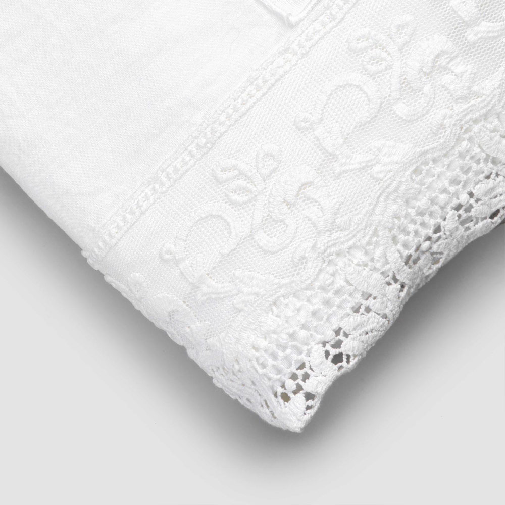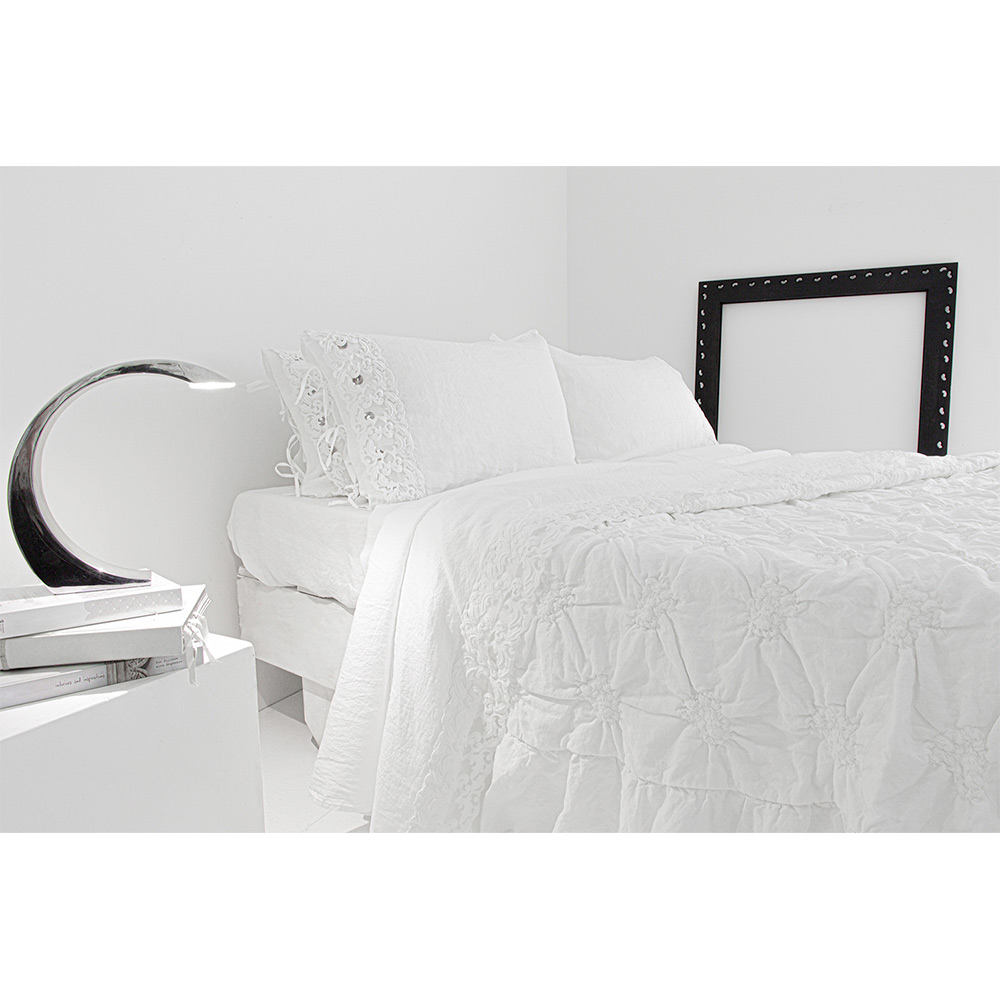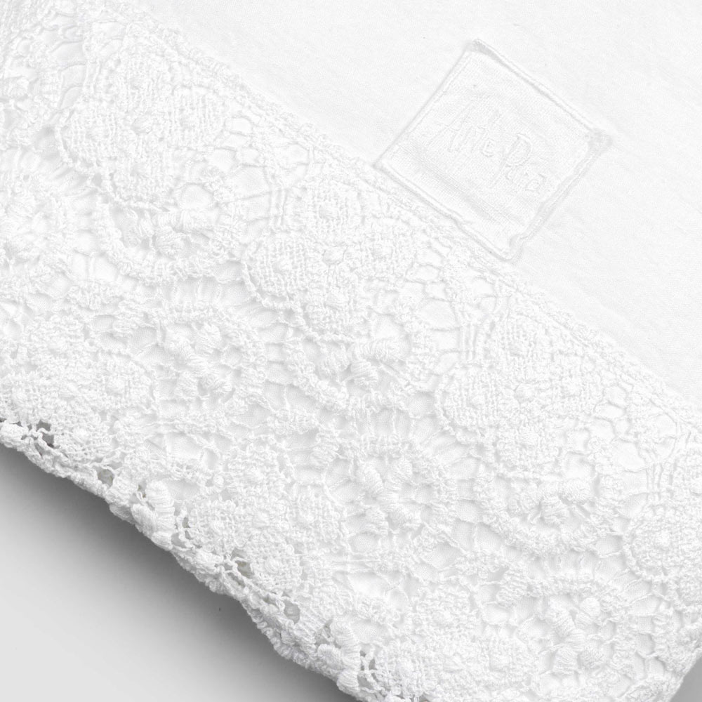 Lenzuolo per letto matrimoniale in puro lino bianco con varie tipologie di pizzo, design di lusso artigianale made in Italy.