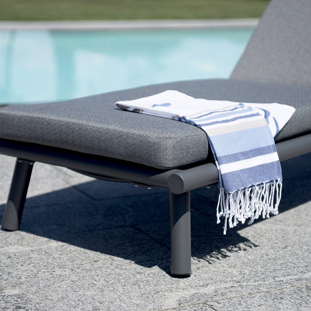 Questo lettino unisce comfort, eleganza e resistenza, diventando l’elemento perfetto per creare un angolo di relax raffinato negli spazi outdoor. La struttura in alluminio assicura leggerezza e solidità, ideale per l’uso quotidiano in giardino, terrazza o a bordo piscina.