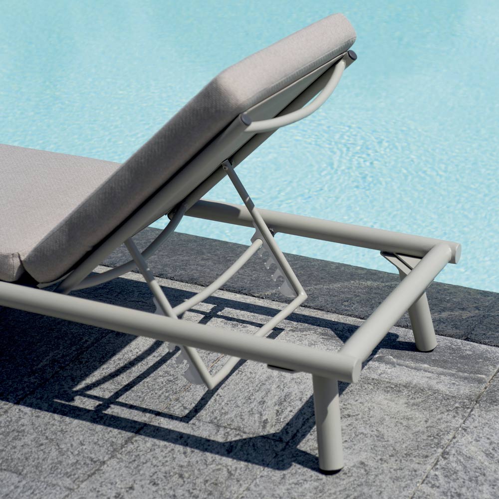 Con dimensioni di 196 x 70 x h. 35/90 cm, offre un’ampia superficie di appoggio e uno schienale regolabile per adattarsi a ogni momento di relax, dalla lettura al completo riposo. I cuscini rivestiti in tessuto idrorepellente garantiscono morbidezza e praticità, resistendo all’umidità e mantenendo intatto l’aspetto elegante anche dopo esposizioni prolungate al sole o all’acqua.