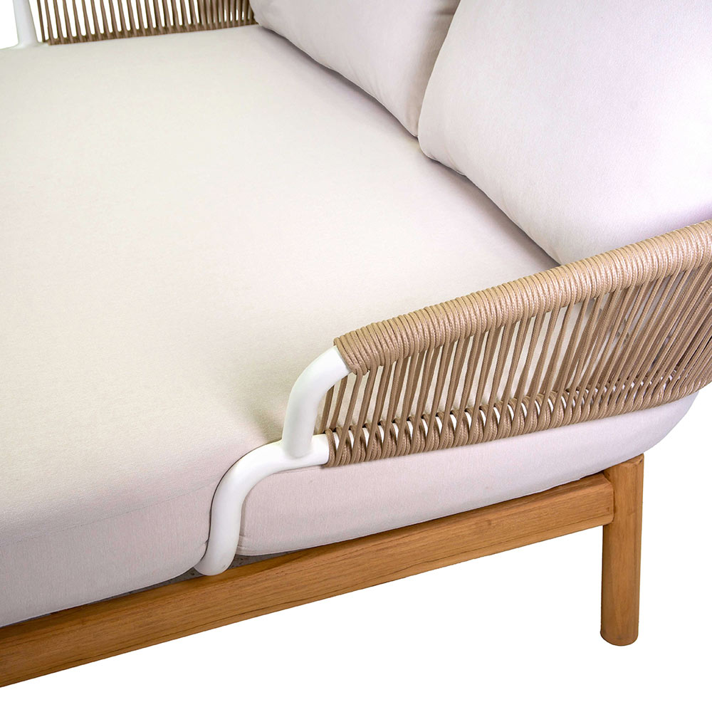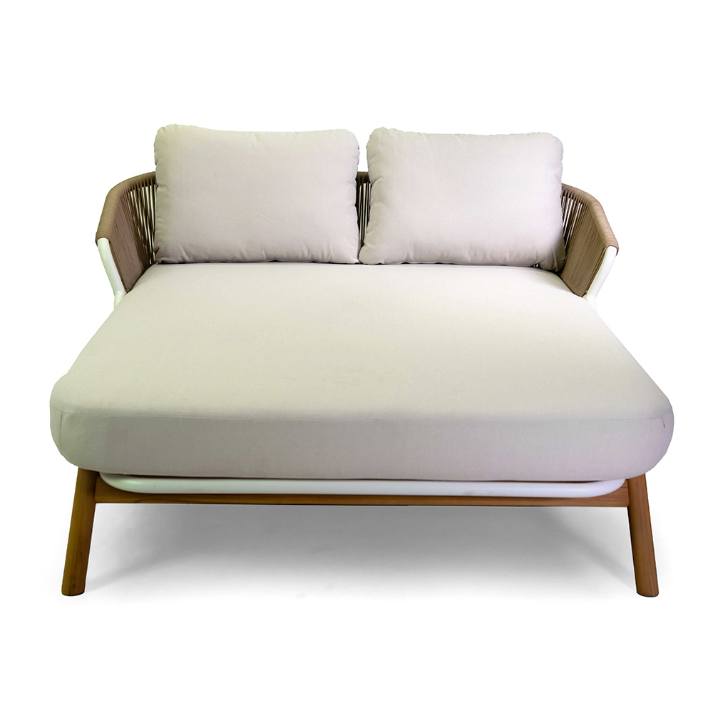 Questo lettino coniuga eleganza e comfort, ideale per arricchire qualsiasi spazio esterno o interno. La sua struttura in legno di teak di alta qualità assicura durabilità e resistenza agli agenti atmosferici, mentre il design slanciato e le linee pulite si adattano perfettamente a qualsiasi stile di arredamento. Il rivestimento in tessuto morbido e resistente offre il massimo del comfort, rendendolo il luogo ideale per rilassarsi. I cuscini aumentano il comfort, facendo di questo lettino un'oasi di relax perfetta per godersi momenti di pura tranquillità all'aria aperta o in un luminoso salotto.