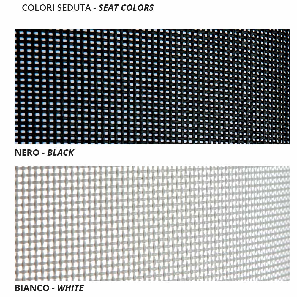 Manutenzione: Per assicurare la massima durata del prodotto consigliamo di riporlo in luoghi chiusi e asciutti durante la stagione invernale, per evitare che l'umidità possa danneggiare la verniciatura della struttura. Nel caso in cui il prodotto venga collocato in una zona di mare come ulteriore precauzione suggeriamo di pulire le superfici con detergenti delicati ogni due/tre mesi, proteggendole poi con prodotti a base oleosa. Per quanto riguarda la seduta, consigliamo di evitare il contatto con sostanze grasse o coloranti per impedire che il materiale le assorba e possa rovinarsi presentando macchie indelebili. Per pulizia frequente utilizzare acqua e detergenti non abrasivi, incolori e a ph neutro.
