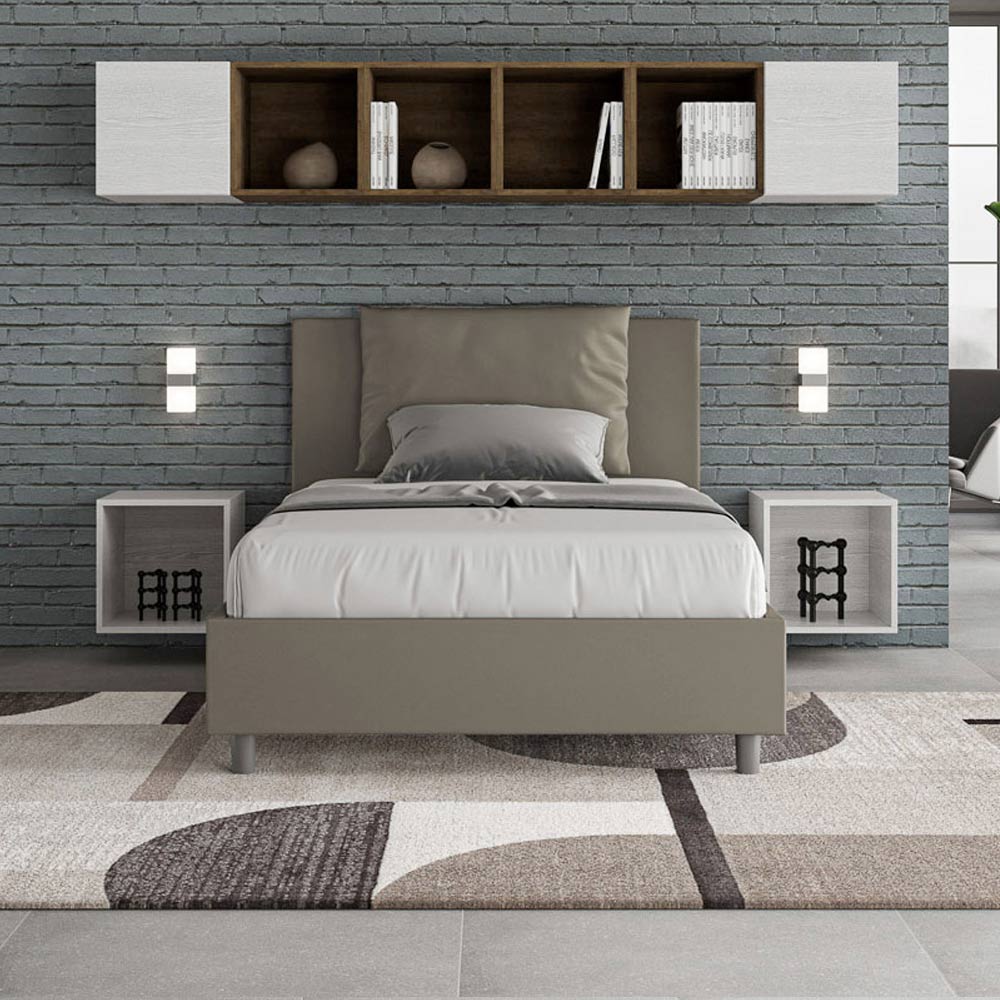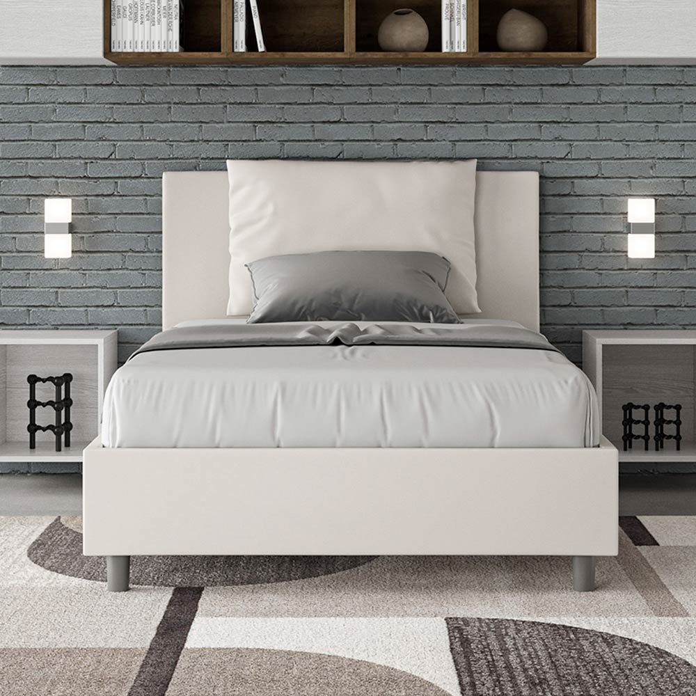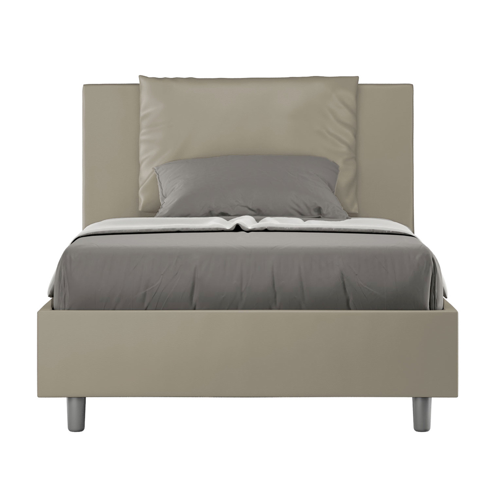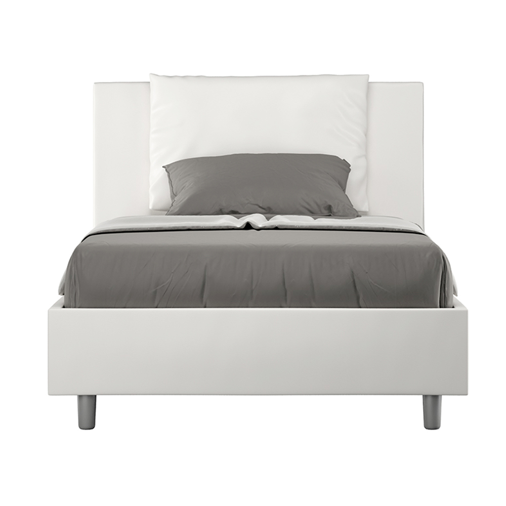 Letto una piazza e mezzo 120x200 cm imbottito realizzato in pannelli di nobilitato e rivestito in similpelle, interamente Made in Italy.