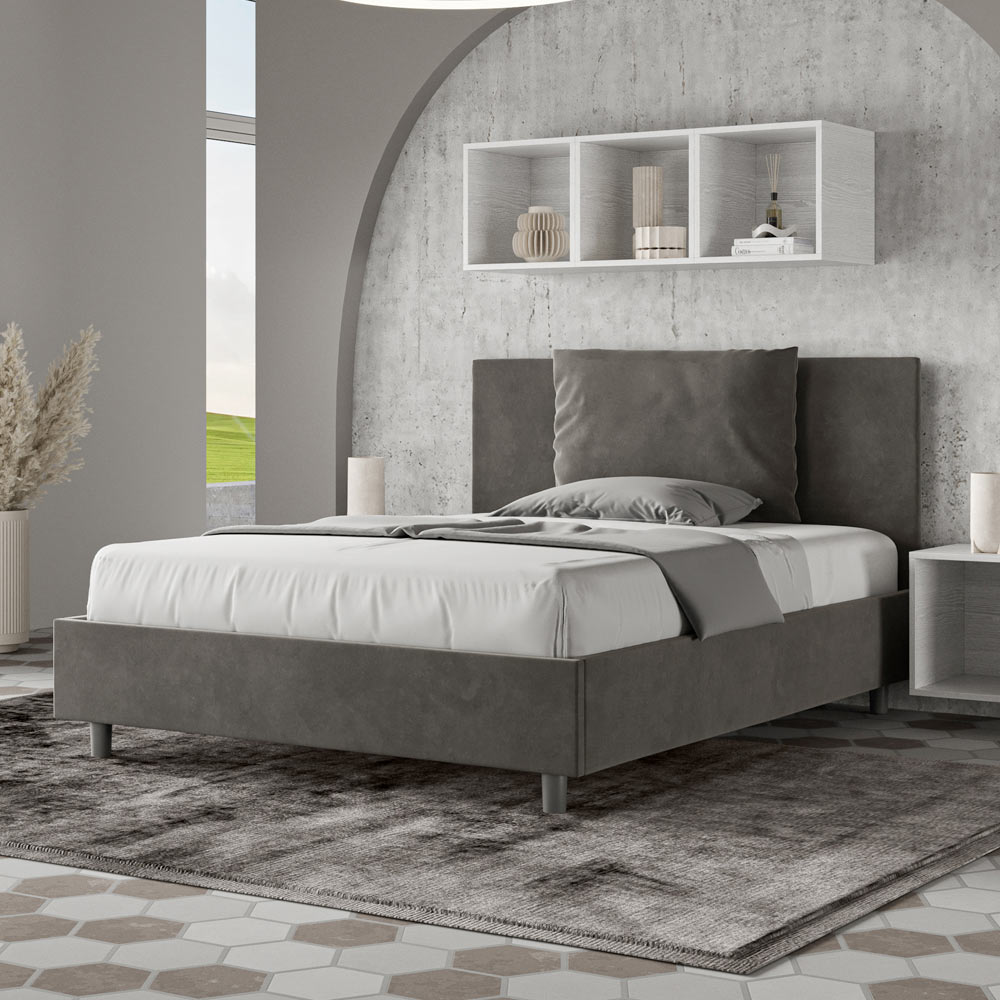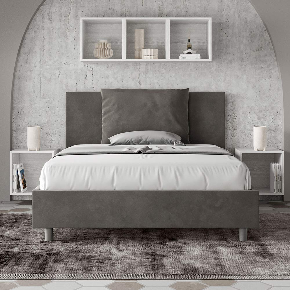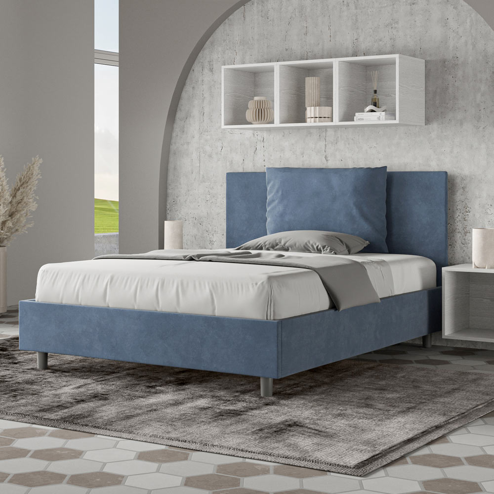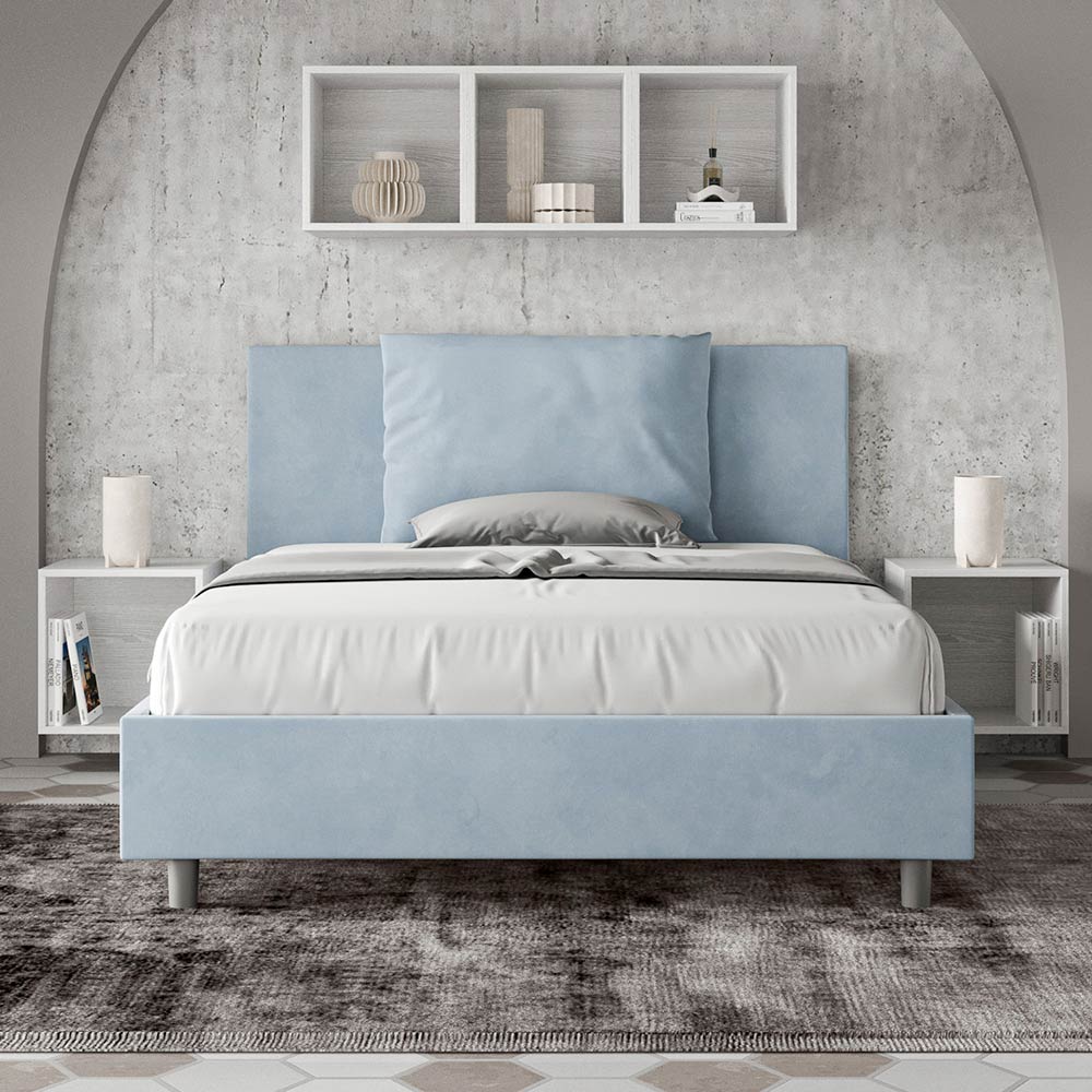 Letto alla francese 140x200 cm imbottito e rivestito in microfibra, Made in Italy