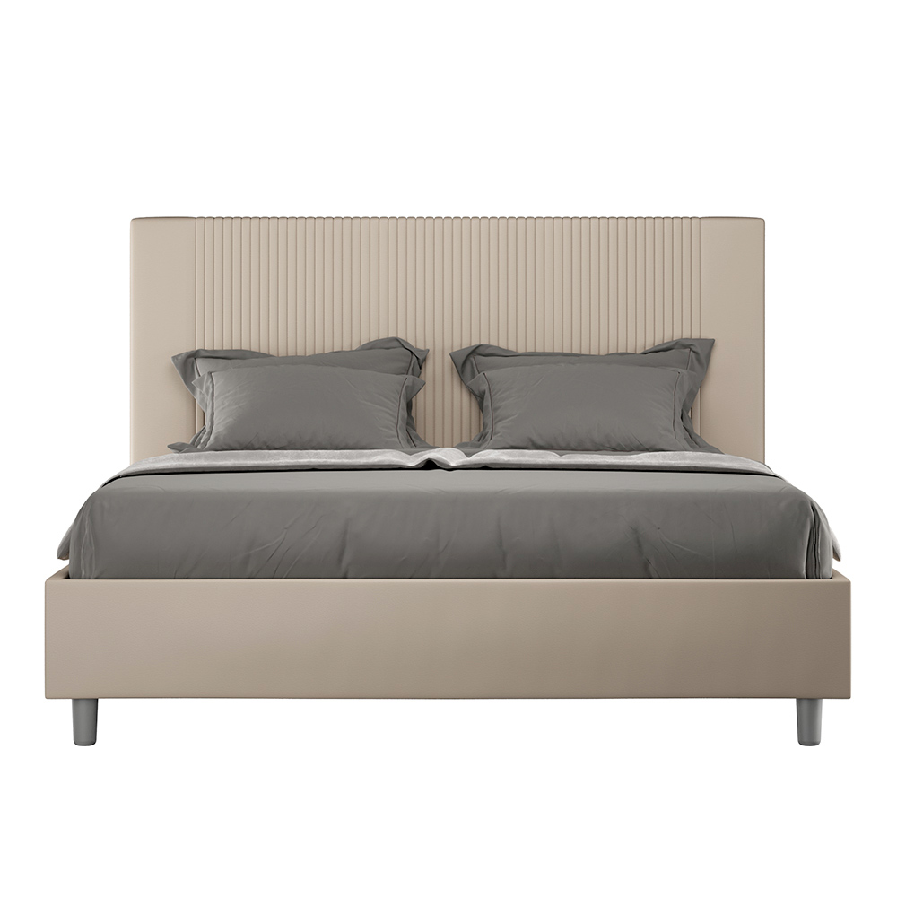 Letto matrimoniale 160x200 cm imbottito e rivestito in similpelle, Made in Italy