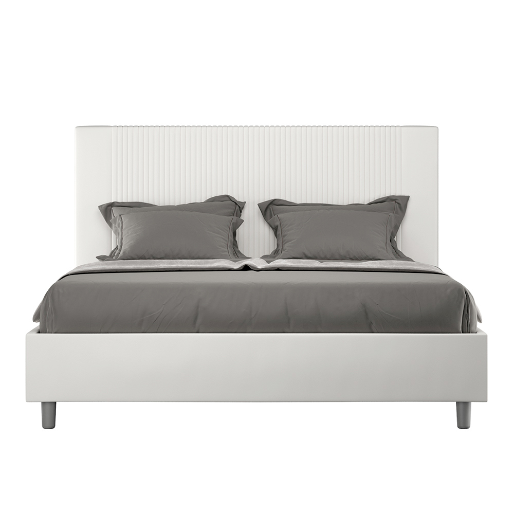 Letto matrimoniale 160x200 cm imbottito realizzato in pannelli di nobilitato e rivestito in similpelle, interamente Made in Italy.