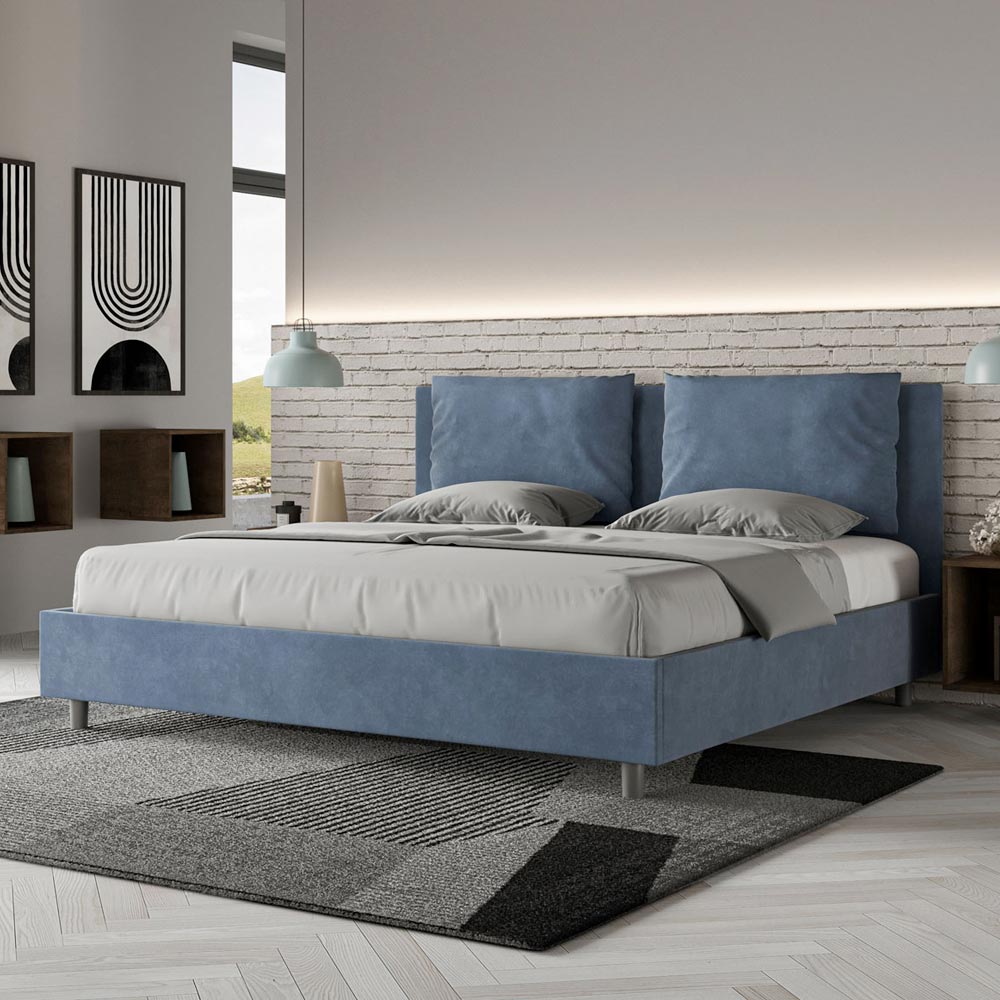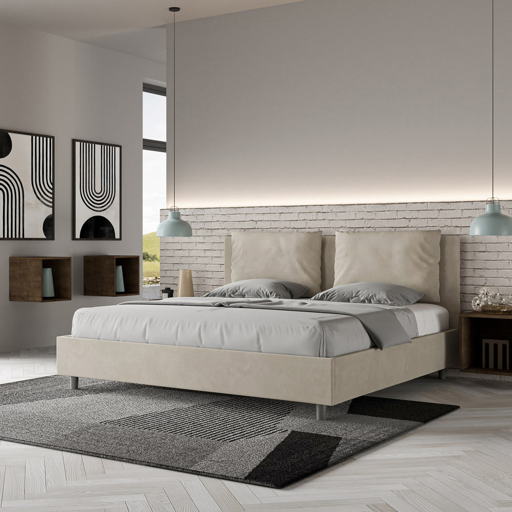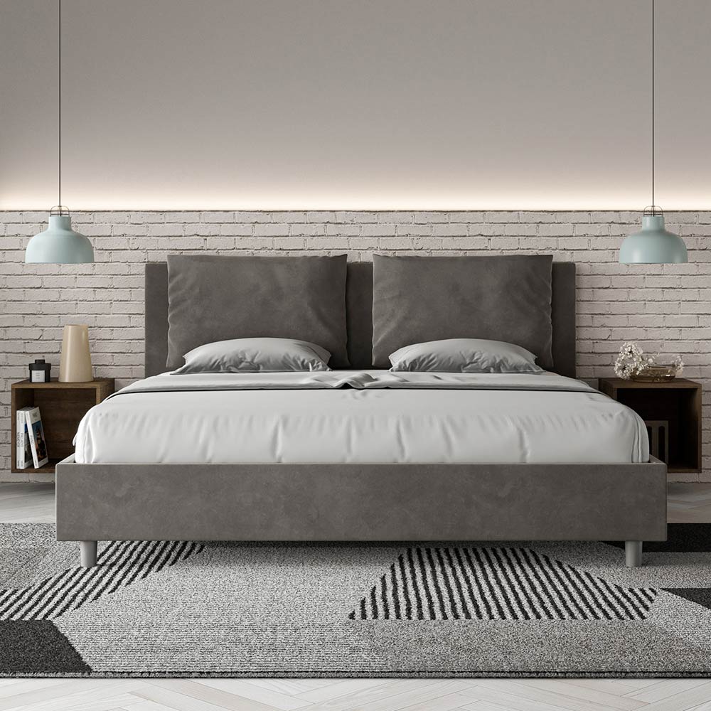 Letto super king size 200x200 cm imbottito e rivestito in microfibra, Made in Italy