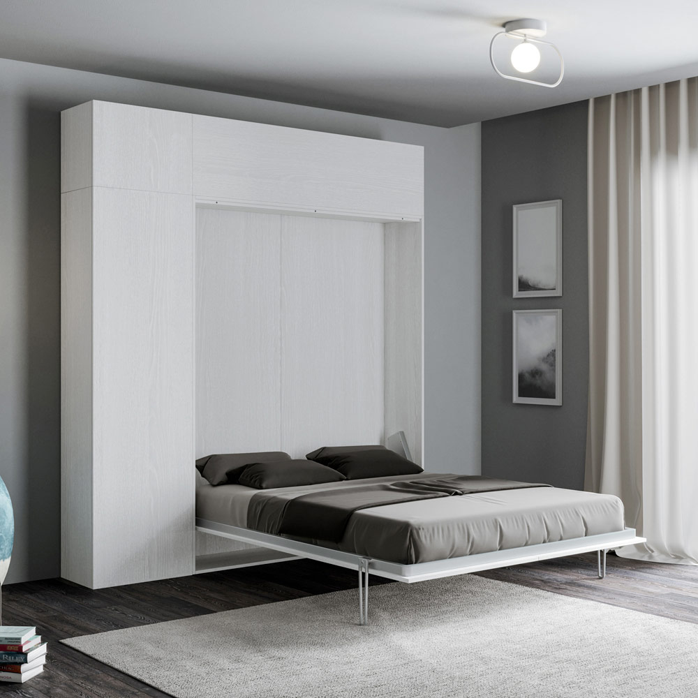 La struttura del letto è realizzata con pannelli di particelle di legno nobilitato da 18 mm di spessore, assicurando resistenza e durata nel tempo. Il meccanismo di apertura è fluido e sicuro, trasformando con un semplice gesto la parete in un comodo letto.