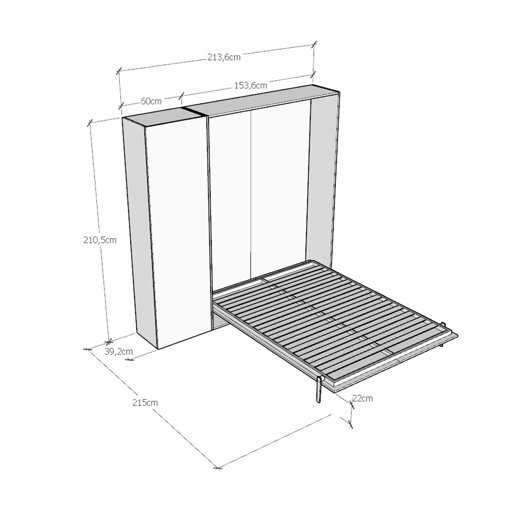 La struttura del letto è realizzata con pannelli di particelle di legno nobilitato da 18 mm di spessore, assicurando resistenza e durata nel tempo. Il meccanismo di apertura è fluido e sicuro, trasformando con un semplice gesto la parete in un comodo letto.