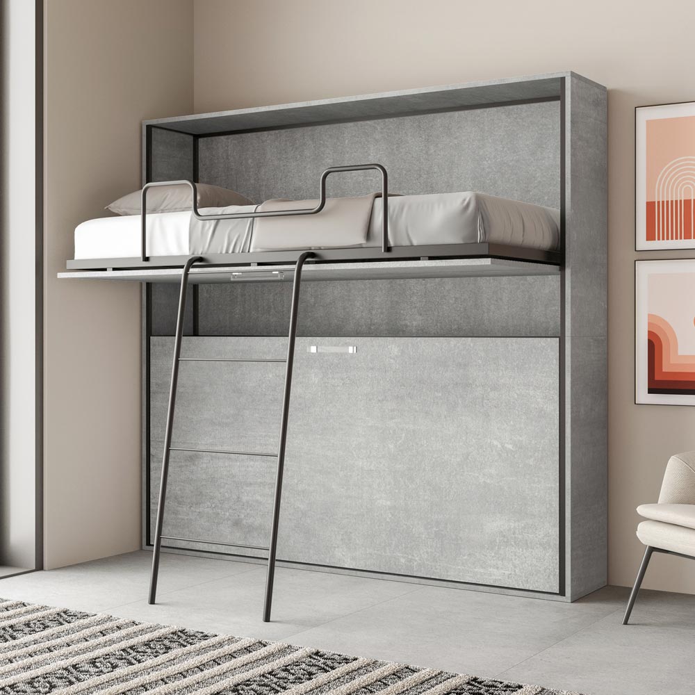 Letto a castello a scomparsa realizzato con pannelli di particelle di legno nobilitato Made in Italy