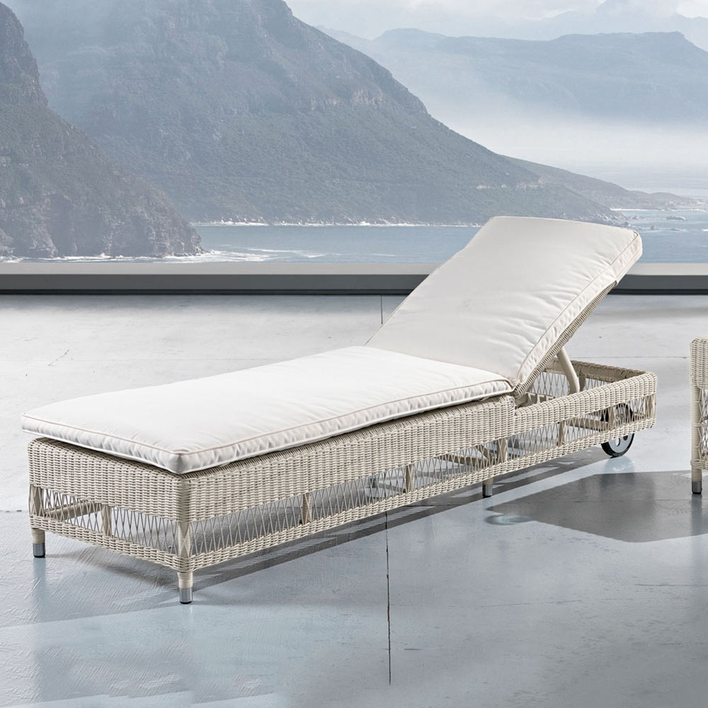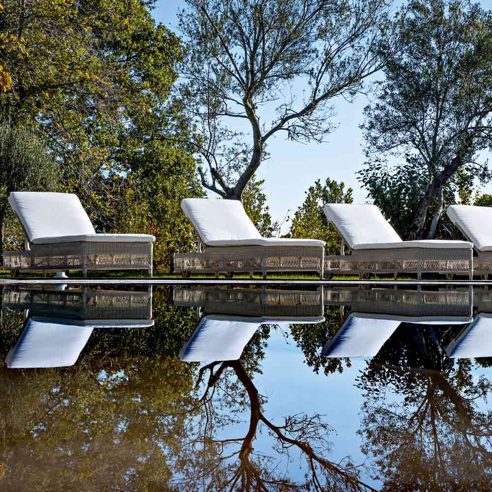 Lo stile d’intreccio è raffinato e delicato ed assieme con l’altissima qualità dei materiali e delle sue forme decise rendono questo lettino perfetto per l’arredo di interni ed esterni, sia di ambienti privati che contract come terrazze, verande, giardini ma trovano anche una perfetta collocazione a bordo piscina.