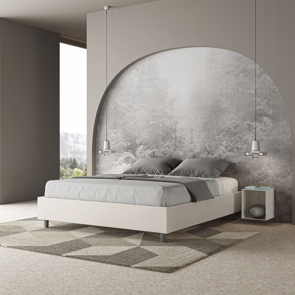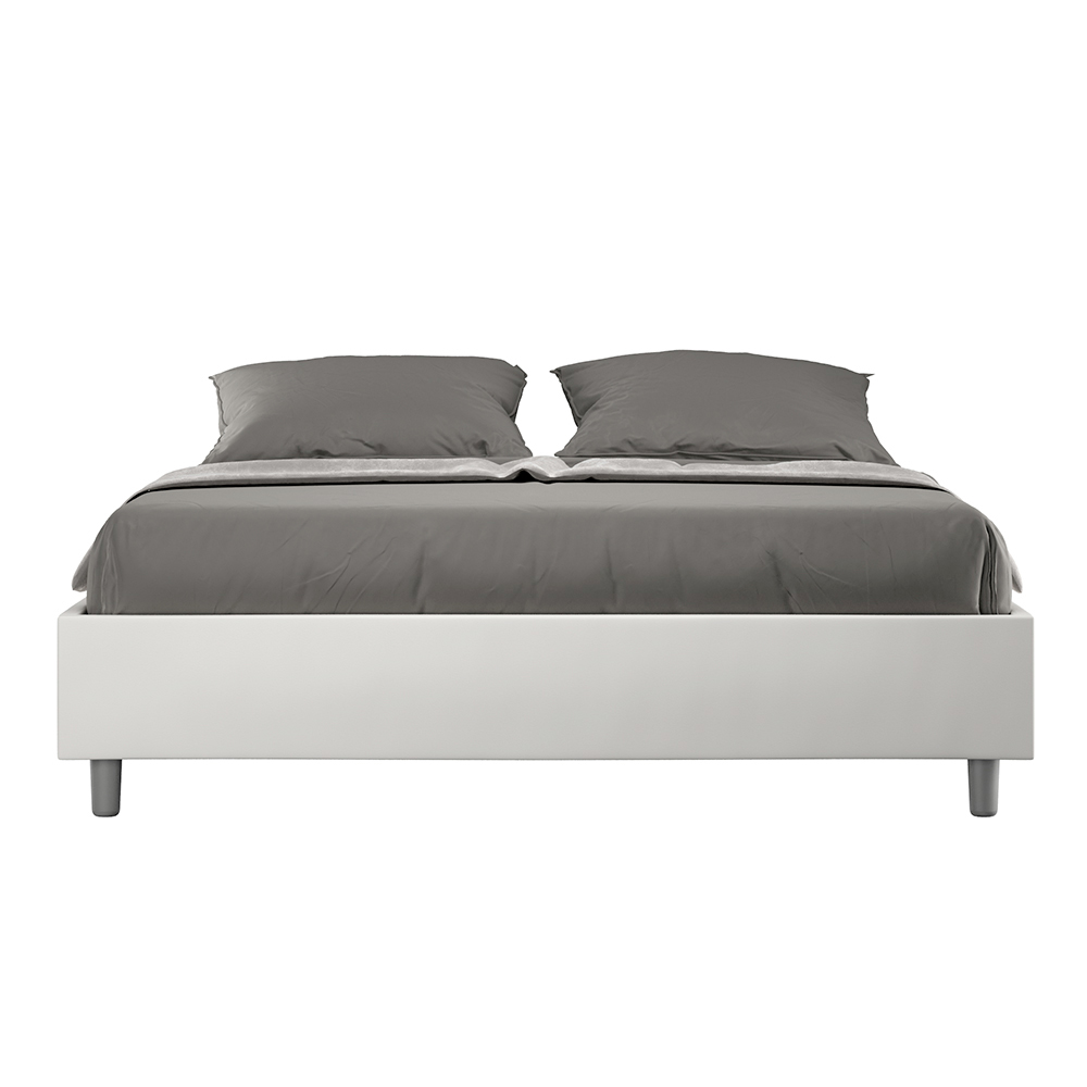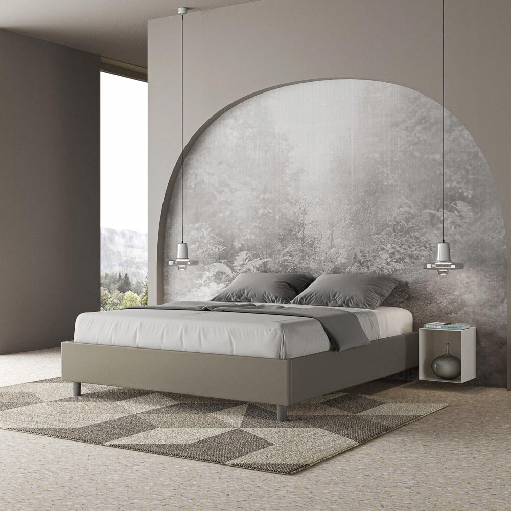 Questo letto matrimoniale si distingue per il suo design pulito e minimale. Questo letto si integra facilmente in qualsiasi ambiente grazie alla sua estetica sobria e alla sua versatilità. Una delle sue caratteristiche salienti è l'assenza di una testiera tradizionale, rendendolo ideale per essere posizionato in spazi particolari, come sotto una finestra, in una mansarda, o vicino a una parete decorata, senza precludere la visione o l'effetto desiderato.