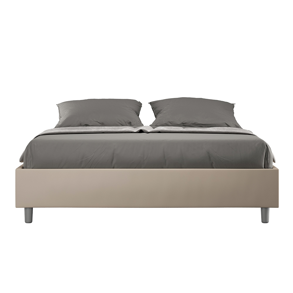 Letto matrimoniale 160x200 cm imbottito realizzato in pannelli di nobilitato e rivestito in similpelle, interamente Made in Italy.