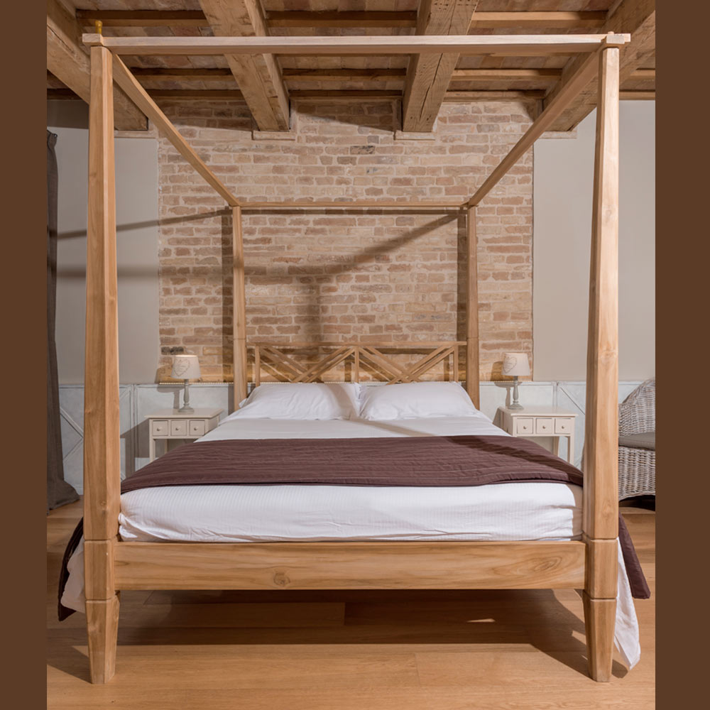 Letto Matrimoniale 180x200 con Baldacchino in Legno Teak Massello - Tempera