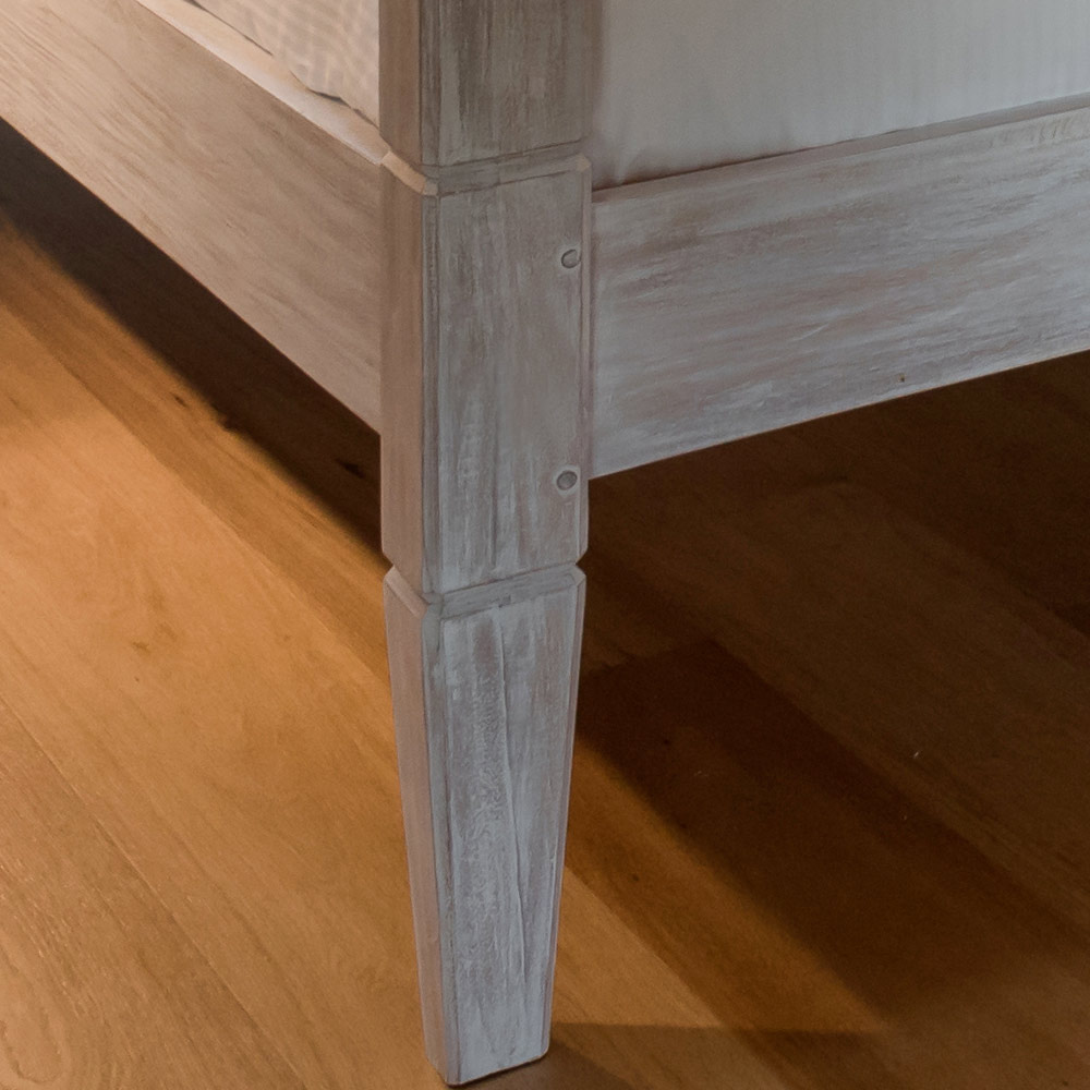 Il letto è realizzato con lavorazione artigianale e in legno essiccato naturalmente, materiale vivo che nel tempo può subire movimenti naturali. Eventuali filature o piccole crepe sono da considerarsi caratteristiche proprie del legno e possono comparire anche a distanza di tempo.