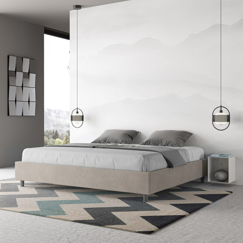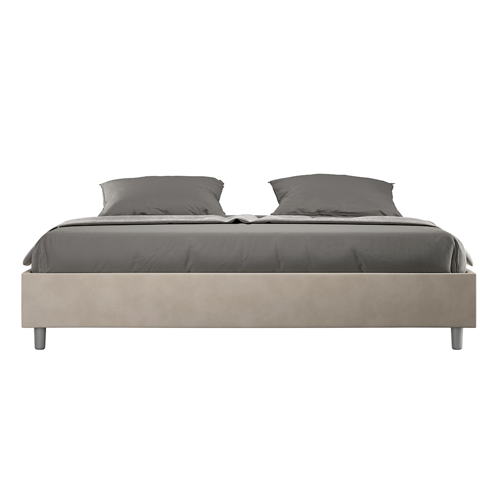 Questo letto king size si distingue per il suo design pulito e minimale. Questo letto si integra facilmente in qualsiasi ambiente grazie alla sua estetica sobria e alla sua versatilità. Una delle sue caratteristiche salienti è l'assenza di una testiera tradizionale, rendendolo ideale per essere posizionato in spazi particolari, come sotto una finestra, in una mansarda, o vicino a una parete decorata, senza precludere la visione o l'effetto desiderato.