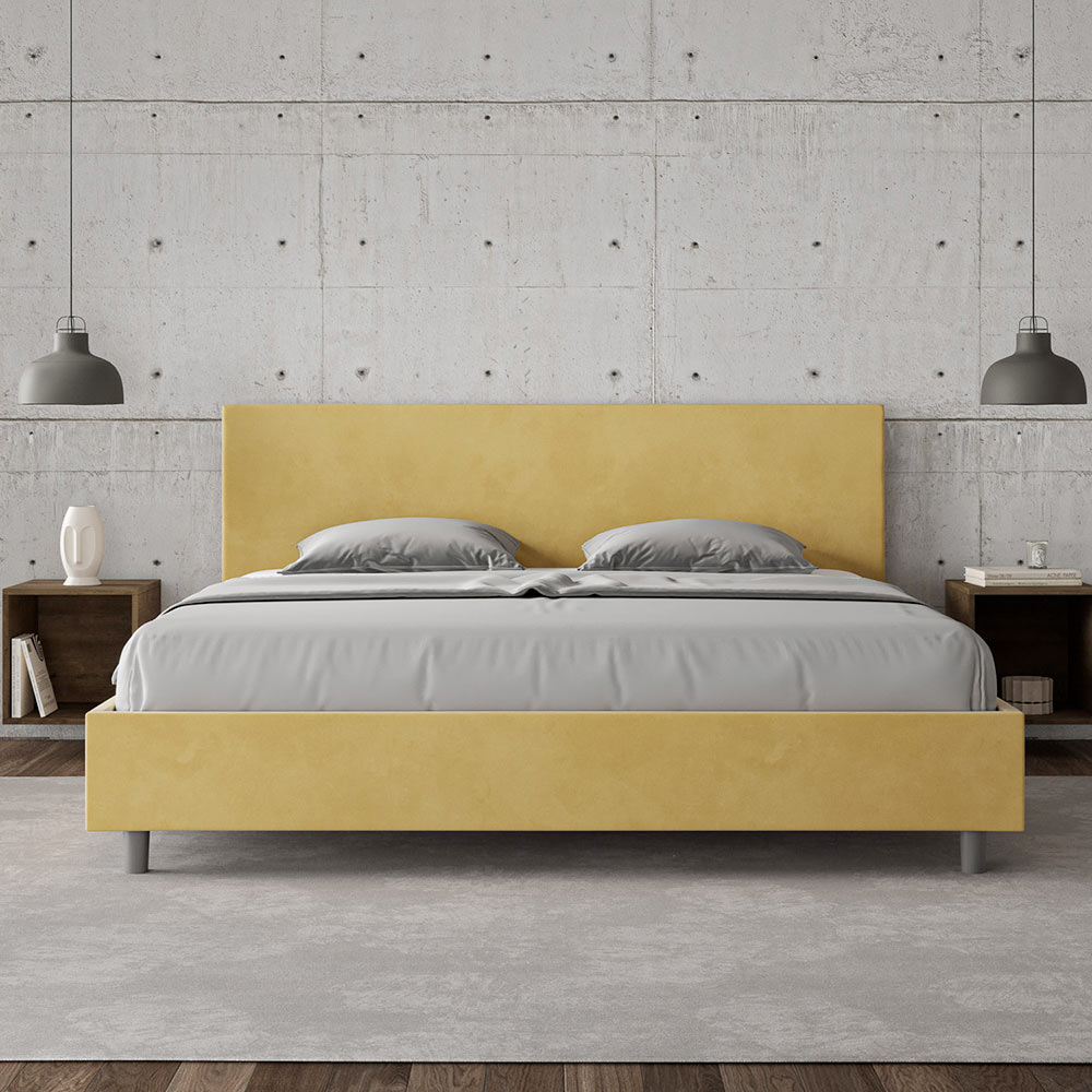 Letto king size 180x200 cm imbottito e rivestito in microfibra, Made in Italy