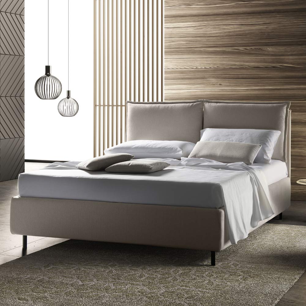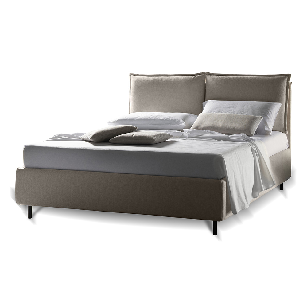 idea contemporanea di comfort che nasce dalla volontà di dare vita ad una soluzione d'arredo tanto funzionale quanto elegante e moderna. La semplicità del giroletto e dei piedini in metallo insieme all'originalità della testata conferisce all'estetica del prodotto un