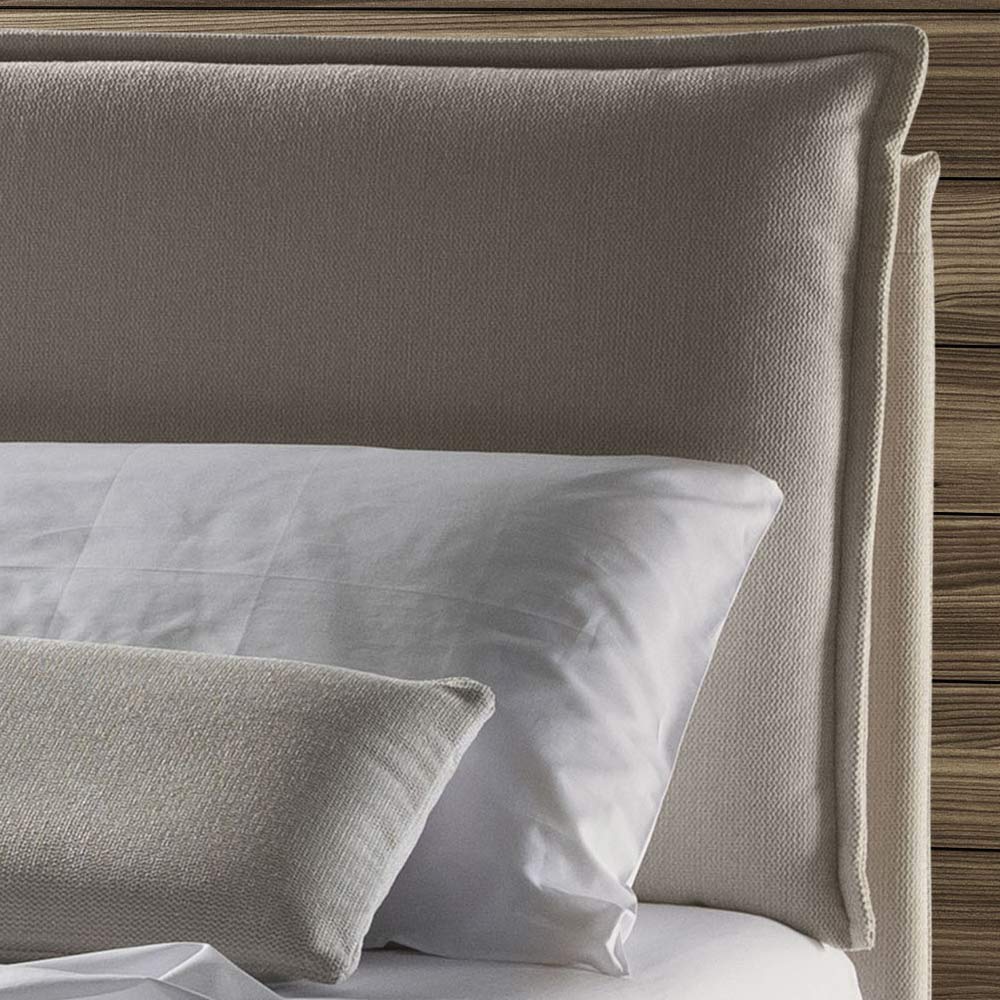 Letto matrimoniale imbottito con rivestimento sfoderabile in tessuto o velluto,