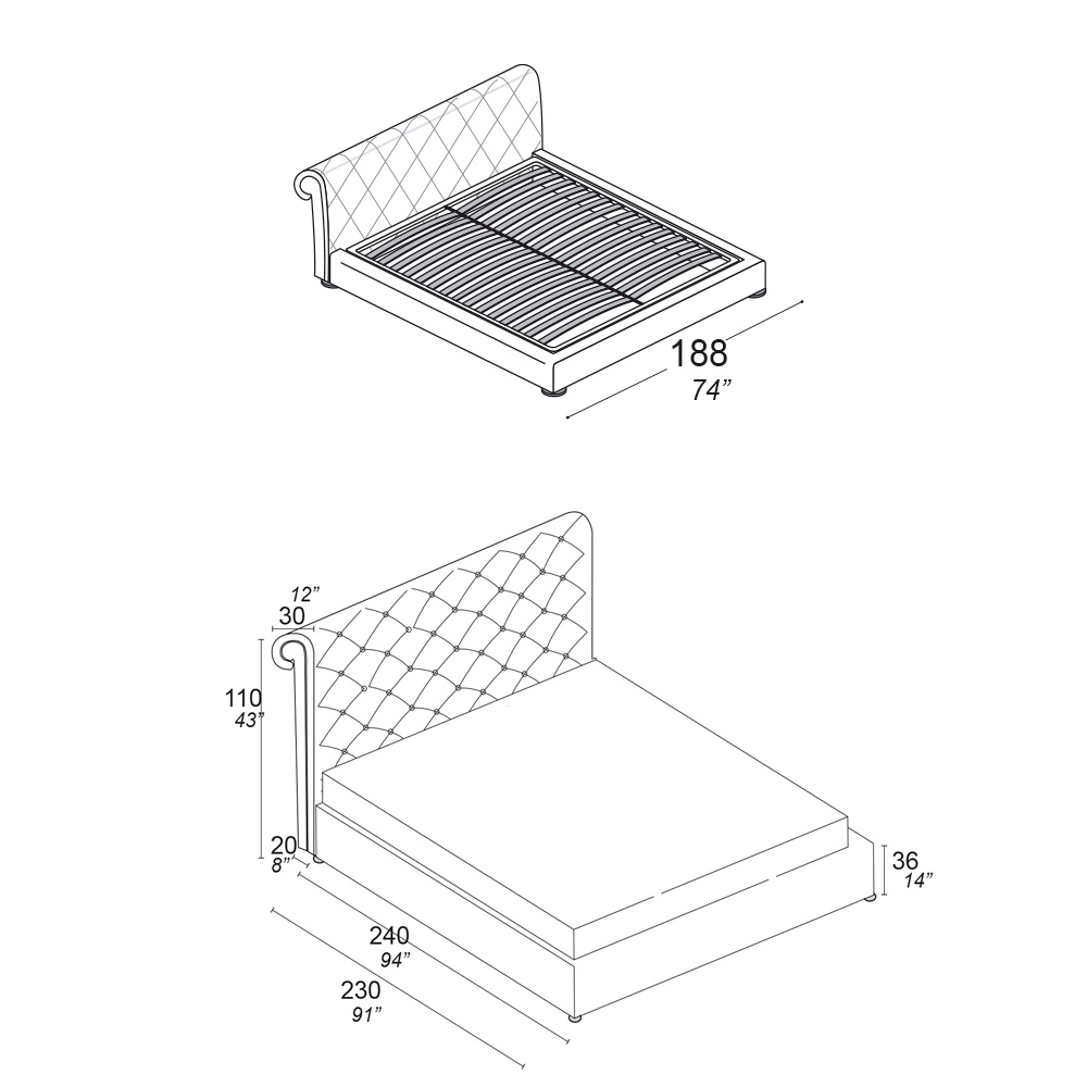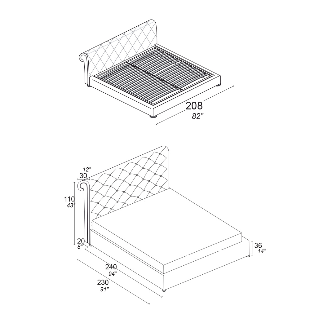 lunghezza: 208 cm x profondità: 240 cm x altezza: 110 cm - adatto a materasso 180x200 cm
