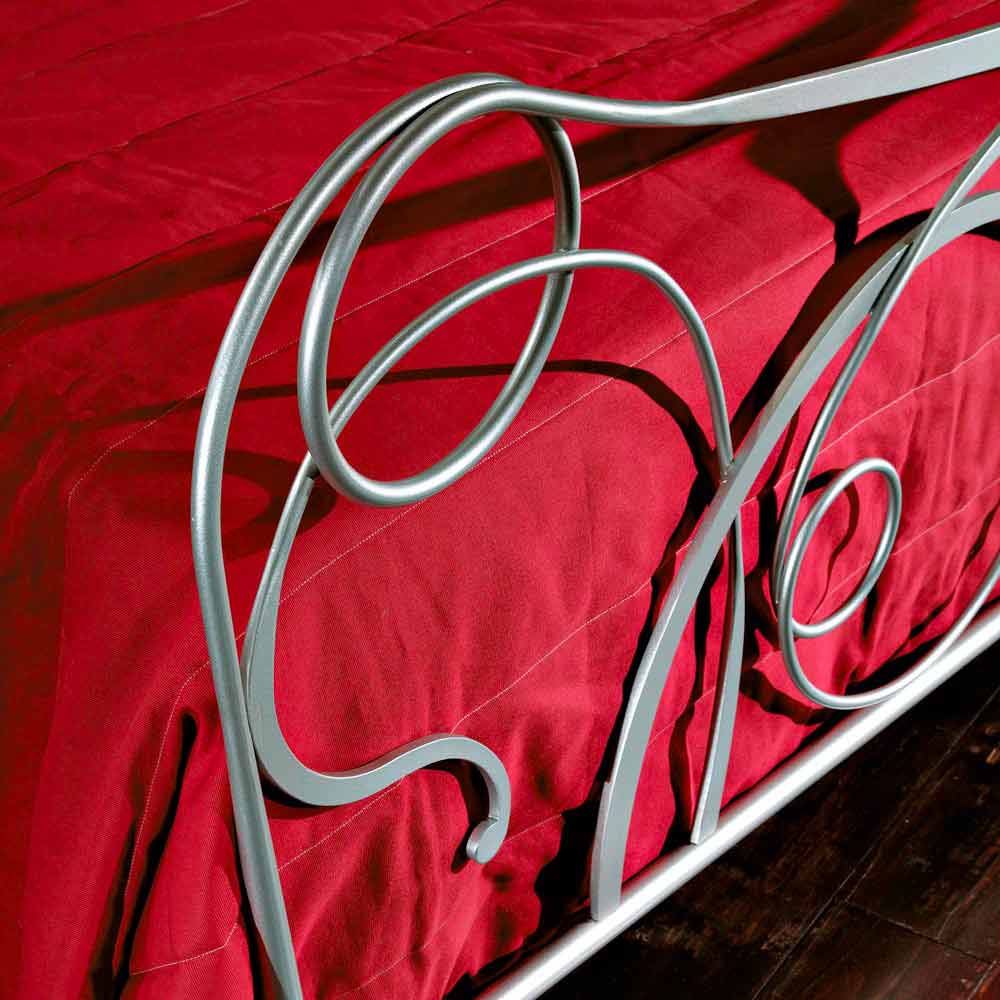 Questo letto viene realizzato a mano in ferro nella finitura Argento.