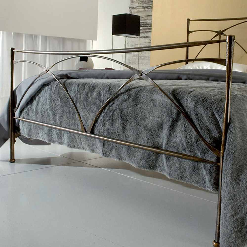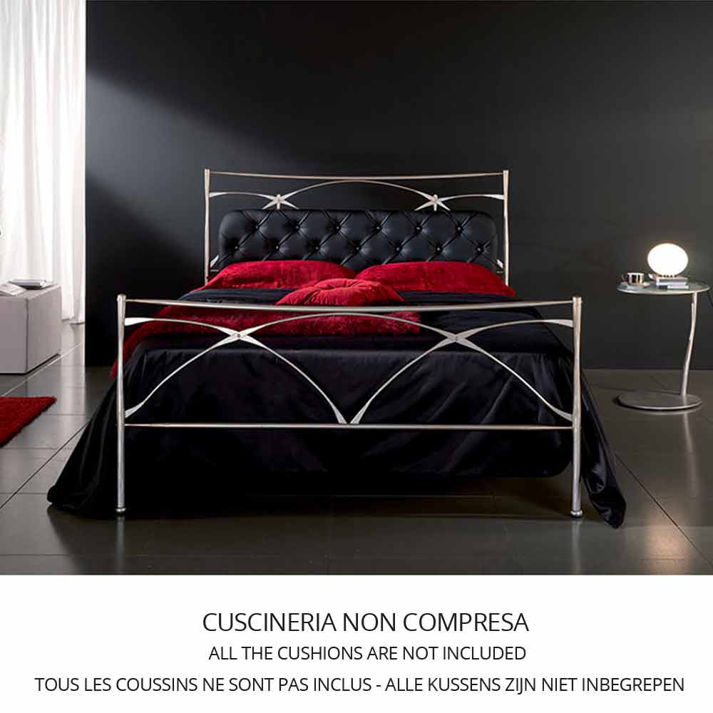 Il letto in ferro battuto nella variante MATRIMONIALE TESTATA CON ATTACCO A MURO prevede l'inserimento di una rete da cm. 160 che deve essere sorretta dalle proprie gambe. In caso ci fossero delle particolari esigenze legate alla conformazione fisica, all'abbinamento con reti già in possesso o semplicemente all'estetica, questo modello, grazie alla nostra produttività artigiana può essere modificato in altezza e larghezza.