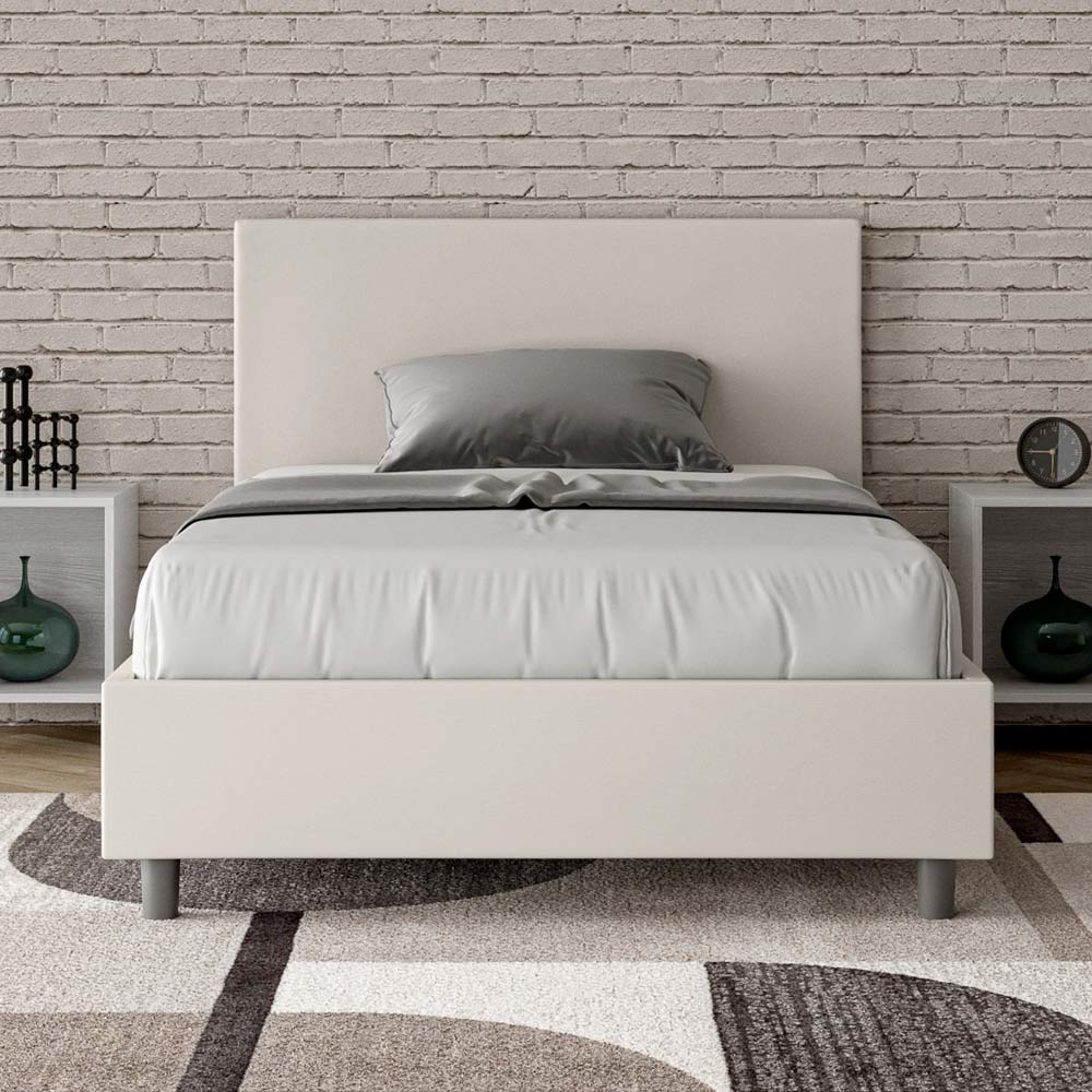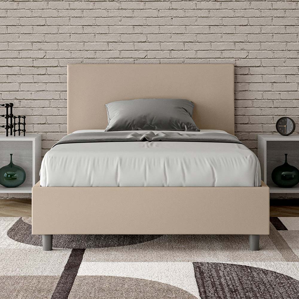 Letto una piazza e mezzo 120x200 cm imbottito realizzato in pannelli di nobilitato e rivestito in similpelle, interamente Made in Italy.