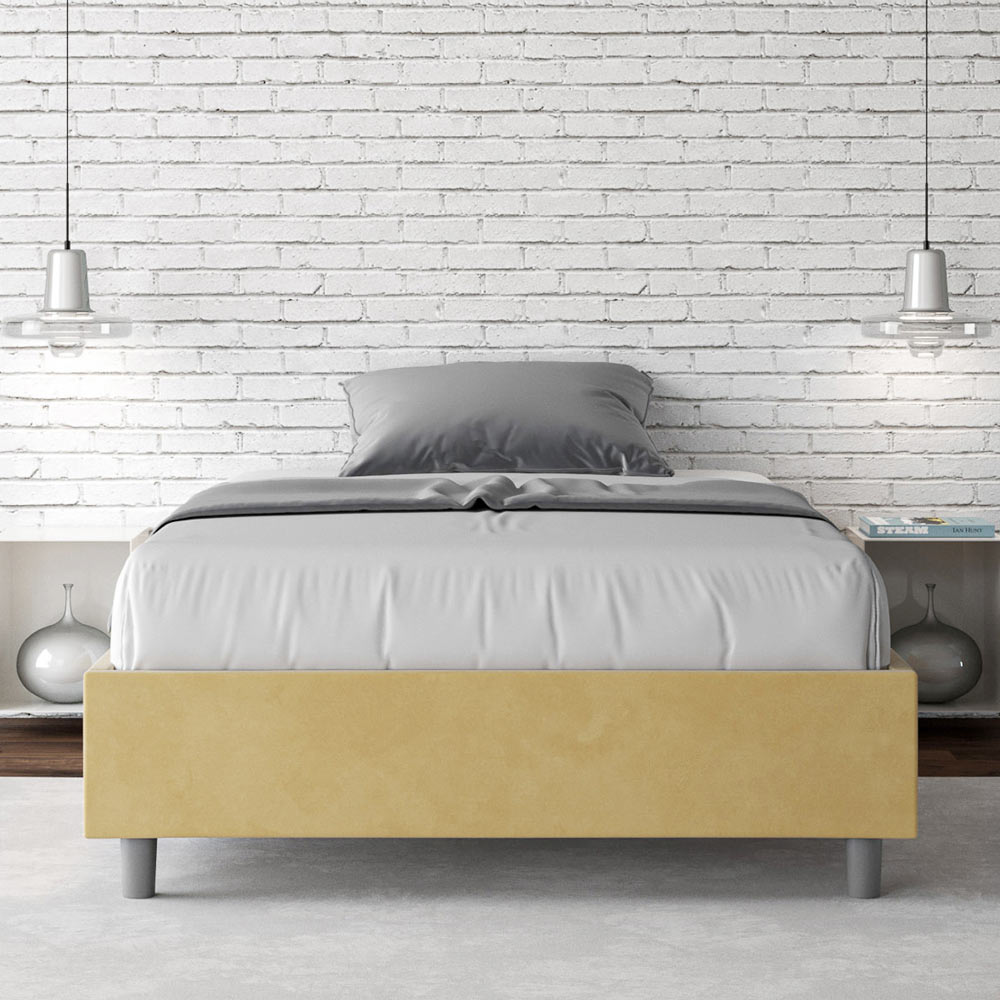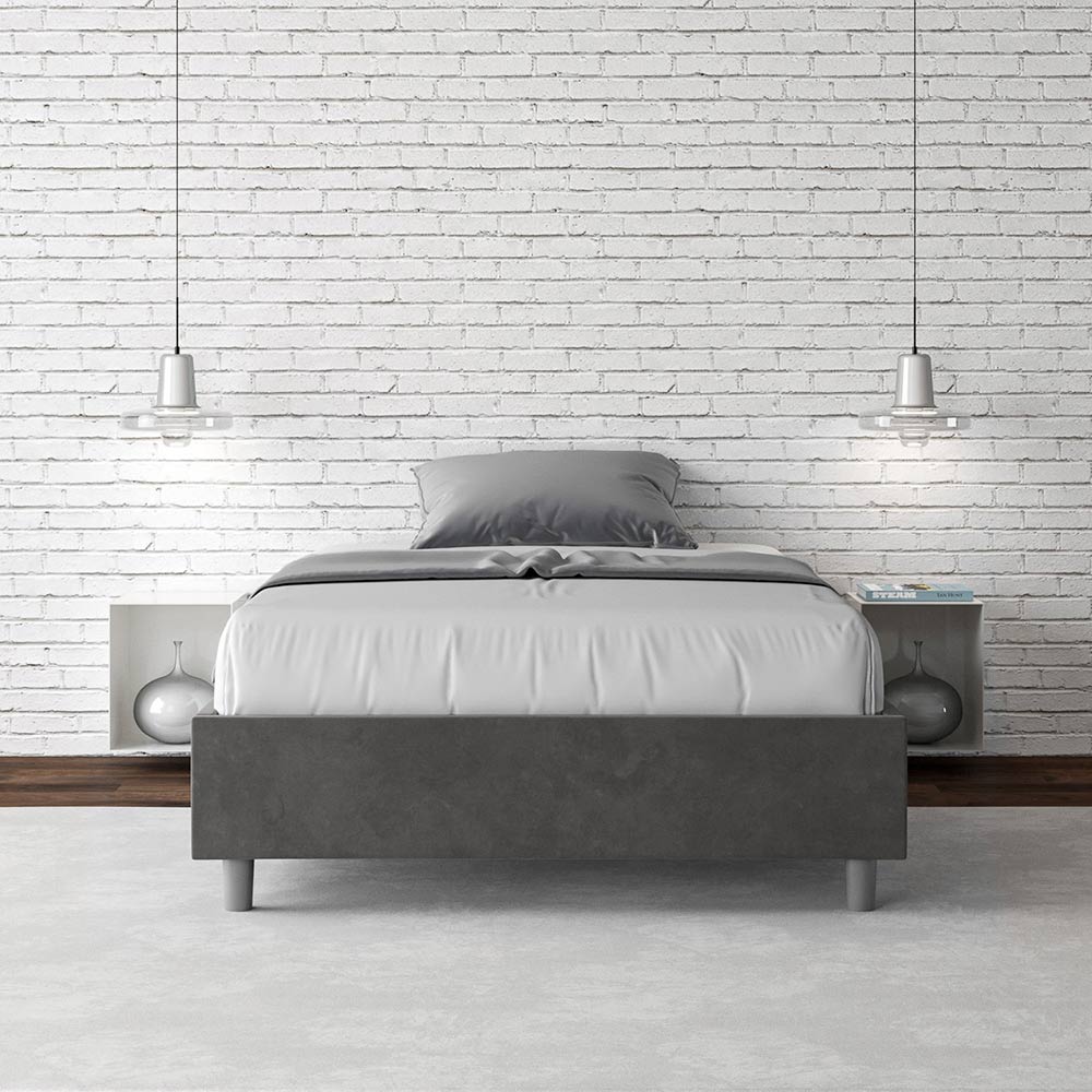 Letto alla francese 140x200 cm imbottito e rivestito in microfibra, Made in Italy