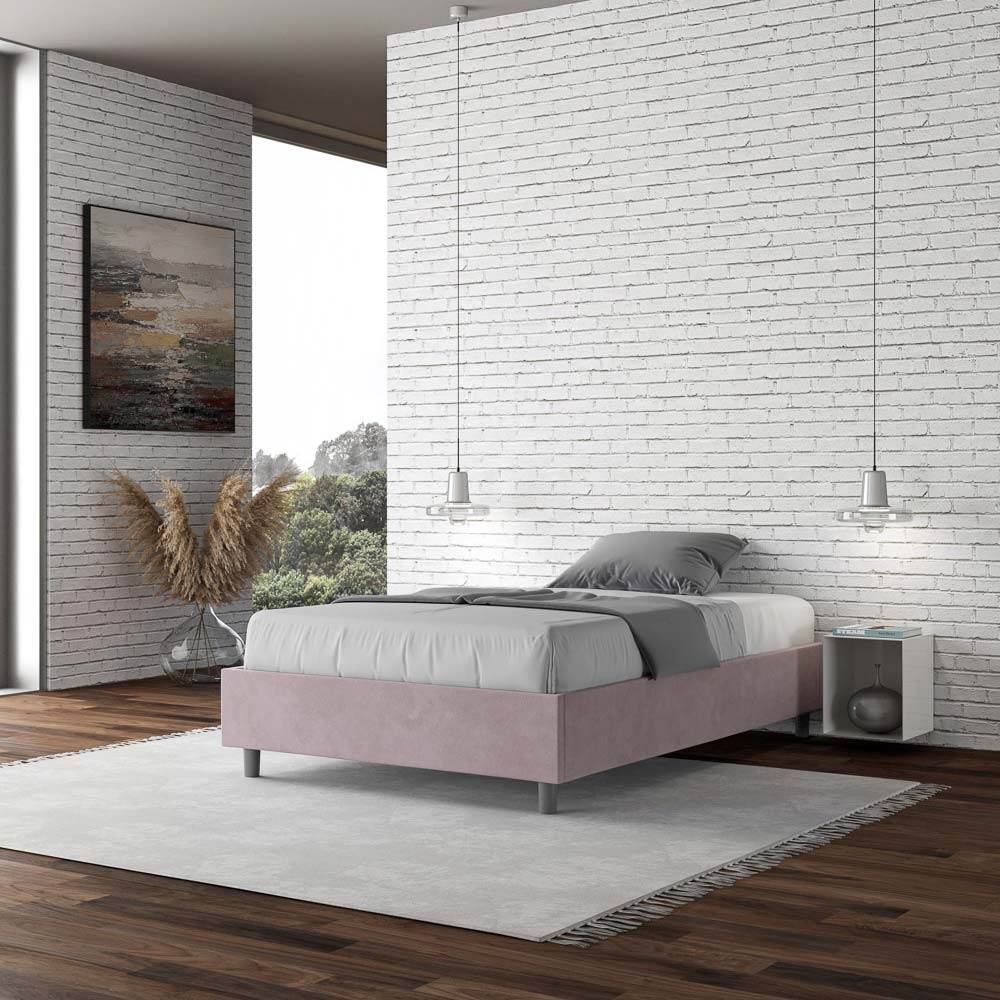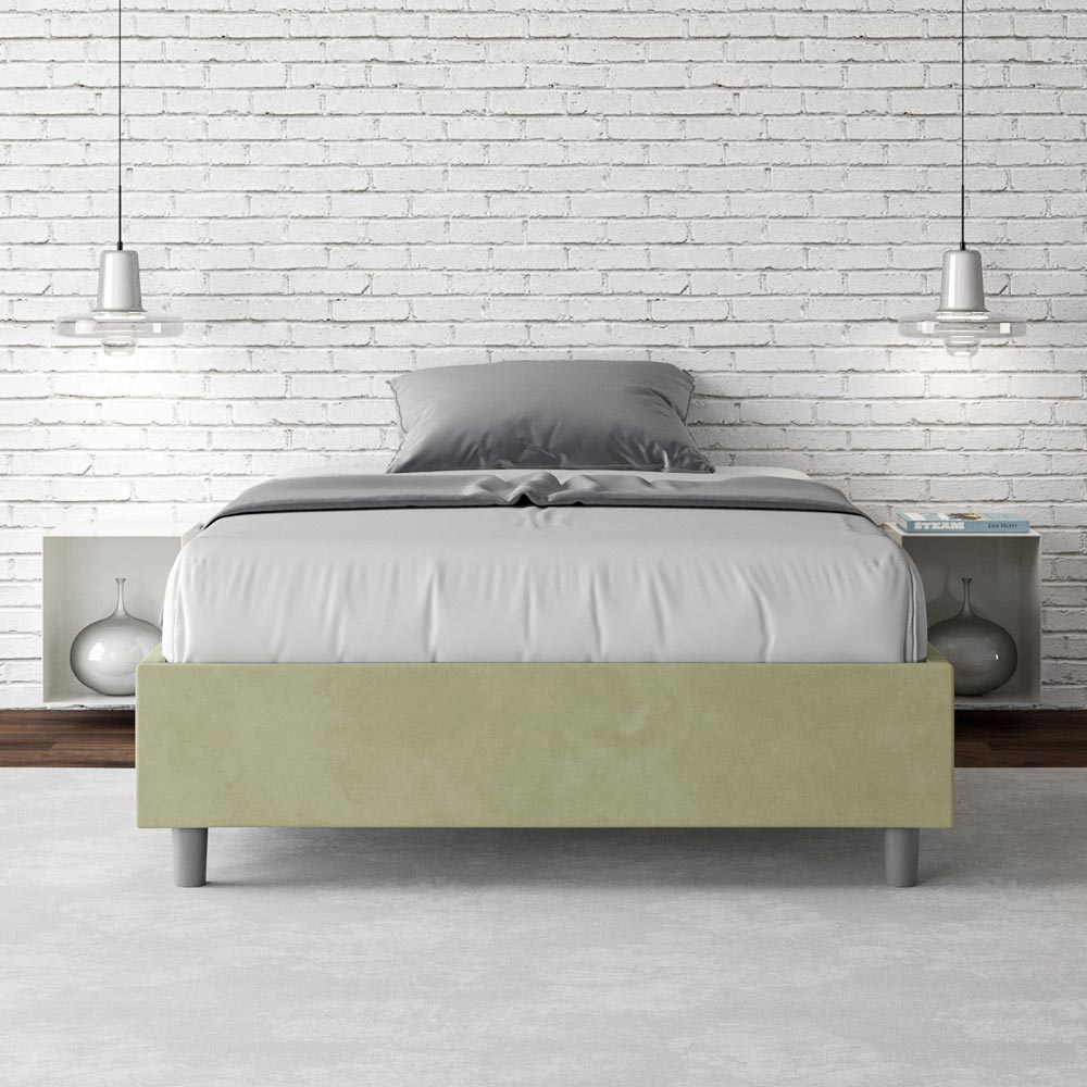 Letto alla francese 140x200 cm imbottito realizzato in pannelli di nobilitato e rivestito in microfibra, interamente Made in Italy.