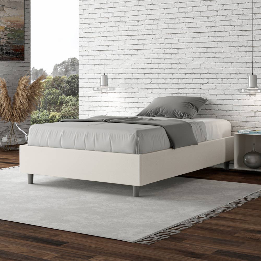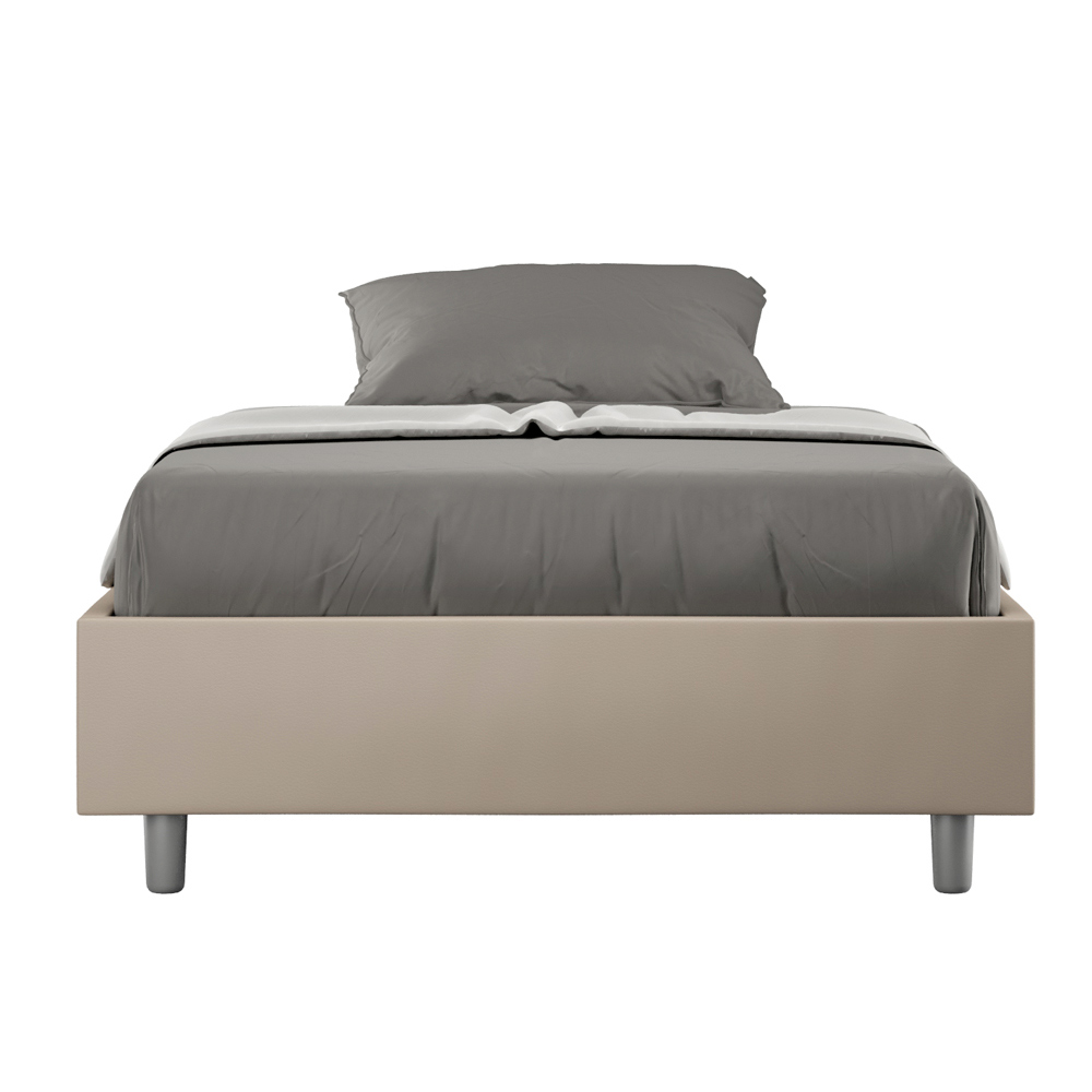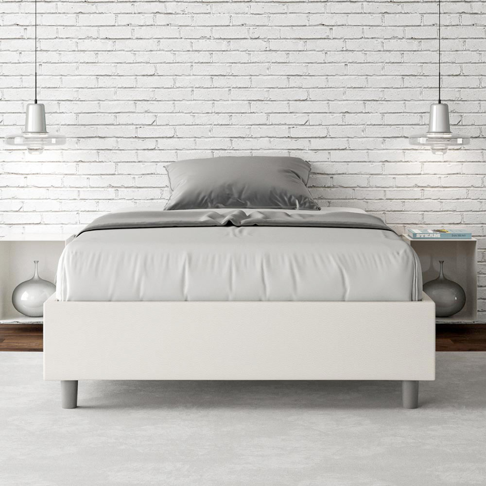 Letto alla francese 140x200 cm imbottito e rivestito in similpelle, Made in Italy