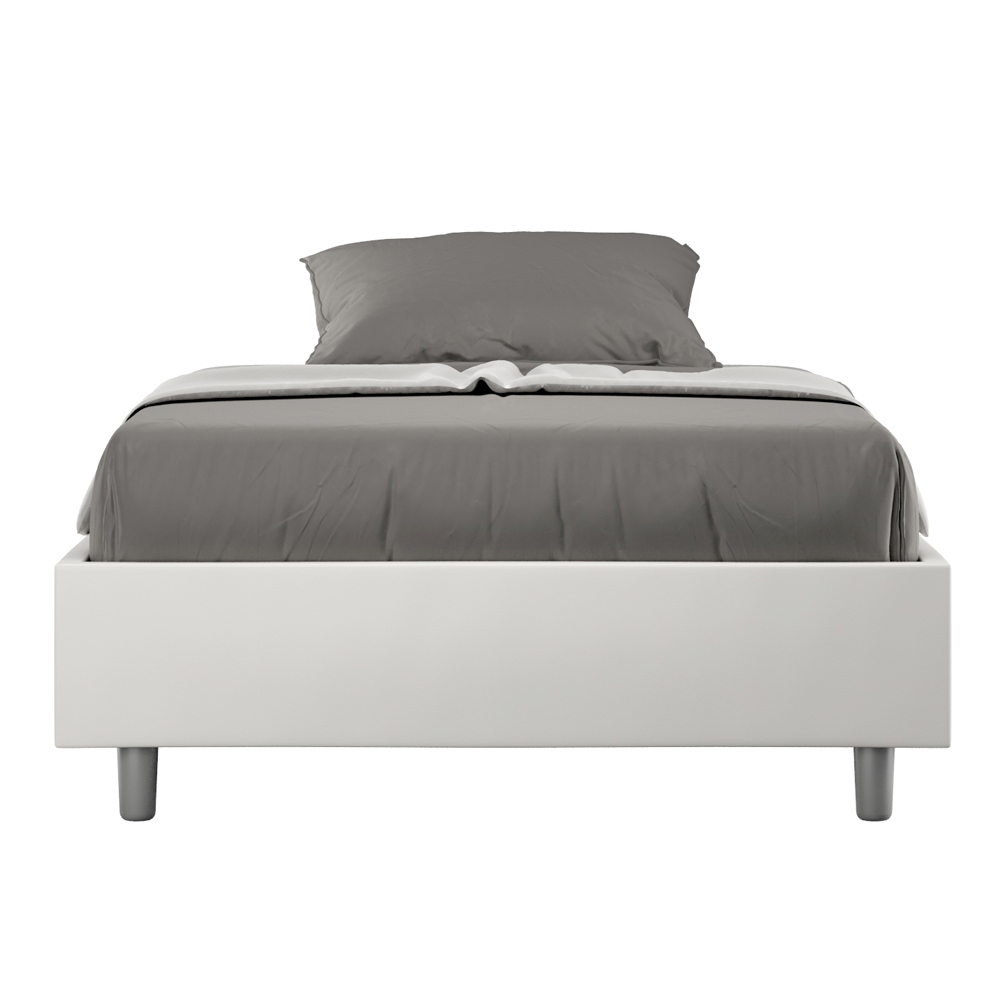 Letto alla francese 140x200 cm imbottito realizzato in pannelli di nobilitato e rivestito in similpelle, interamente Made in Italy.