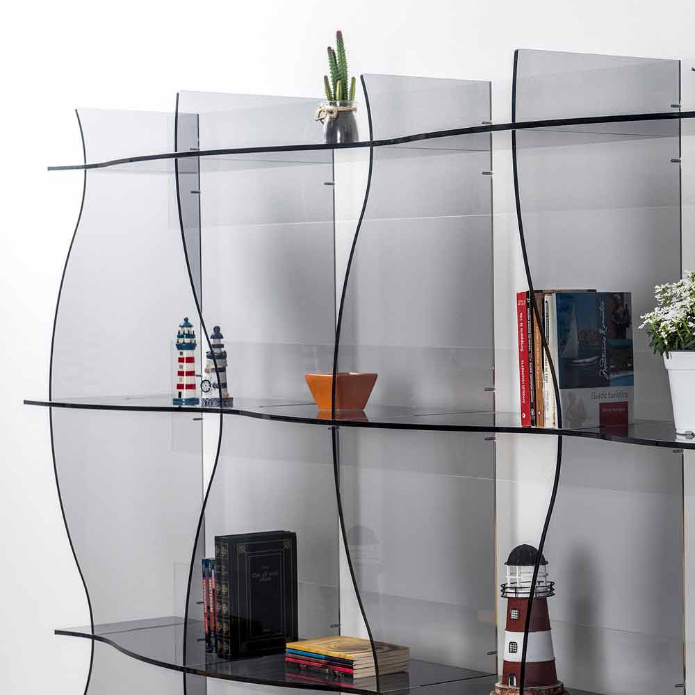 Biblioteca privata dalle linee minimal e dall'effetto di sospensione nel vuoto per i libri che la arredano: proprio i libri, infatti, personalizzano l'ambiente domestico. La libreria Pam fumè trasparente nasce come biblioteca autoportante, ma è possibile l'ancoraggio a muro. Le caratteristiche fisico-tecniche del plexiglass (antiurto, indeformabile, inalterabile, termoisolante) rendono i prodotto adatto sia in casa che outdoor. La luminosità e la brillantezza si mantengono costanti ed inalterati nel tempo. Il plexiglass PMMA da polimero vergine utilizzato da è atossico, ipoallergico, inodore ed antibatterico. Riciclabile 100%. Conforme UNI EN 71-3:200. Pensato, progettato e realizzato in Italia, con materiali italiani.