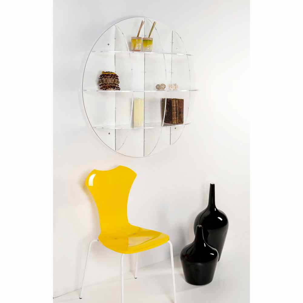 Reinterpretazione di un classico del design degli anni '60 di Gio Colombo: una libreria da parete, in plexiglass 100% da polimero verigine bianco latte, composta da suggestivi elementi geometrici tondeggianti e sinuosi, che diventa un vero e proprio elemento di design estetico. Le caratteristiche fisico-tecniche del plexiglass (antiurto, indeformabile, inalterabile, termoisolante) rendono il prodotto adatto sia in casa che outdoor. La luminosità e la brillantezza si mantengono costanti ed inalterati nel tempo. Il plexiglass PMMA da polimero vergine utilizzato da è atossico, ipoallergico, inodore ed antibatterico. Riciclabile 100%. Conforme UNI EN 71-3:200.Pensato, progettato e realizzato in Italia, con materiali italiani.