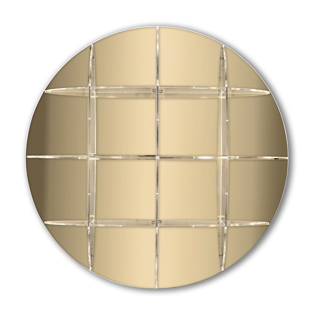 Libreria da parete rotonda in plexiglass oro o argento Made in Italy.