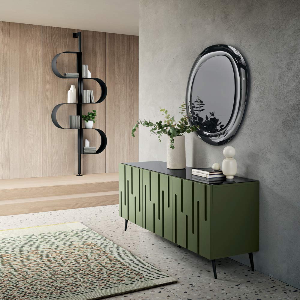 Elegante madia di design Made in Italy, ideale per arredare con stile il soggiorno o la zona living. Il suo design contemporaneo si distingue per un forte carattere scultoreo, capace di trasformare il mobile contenitore in un elemento decorativo di grande impatto visivo.