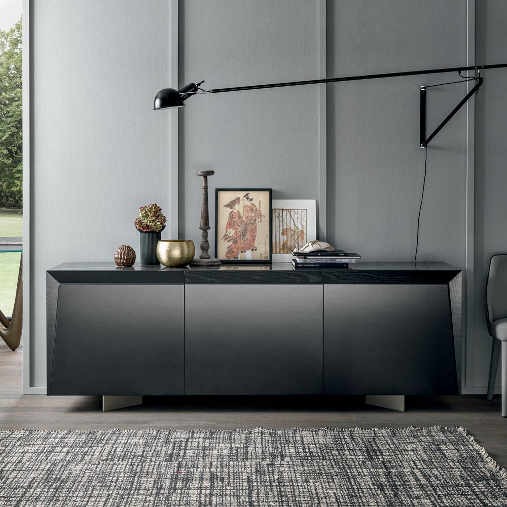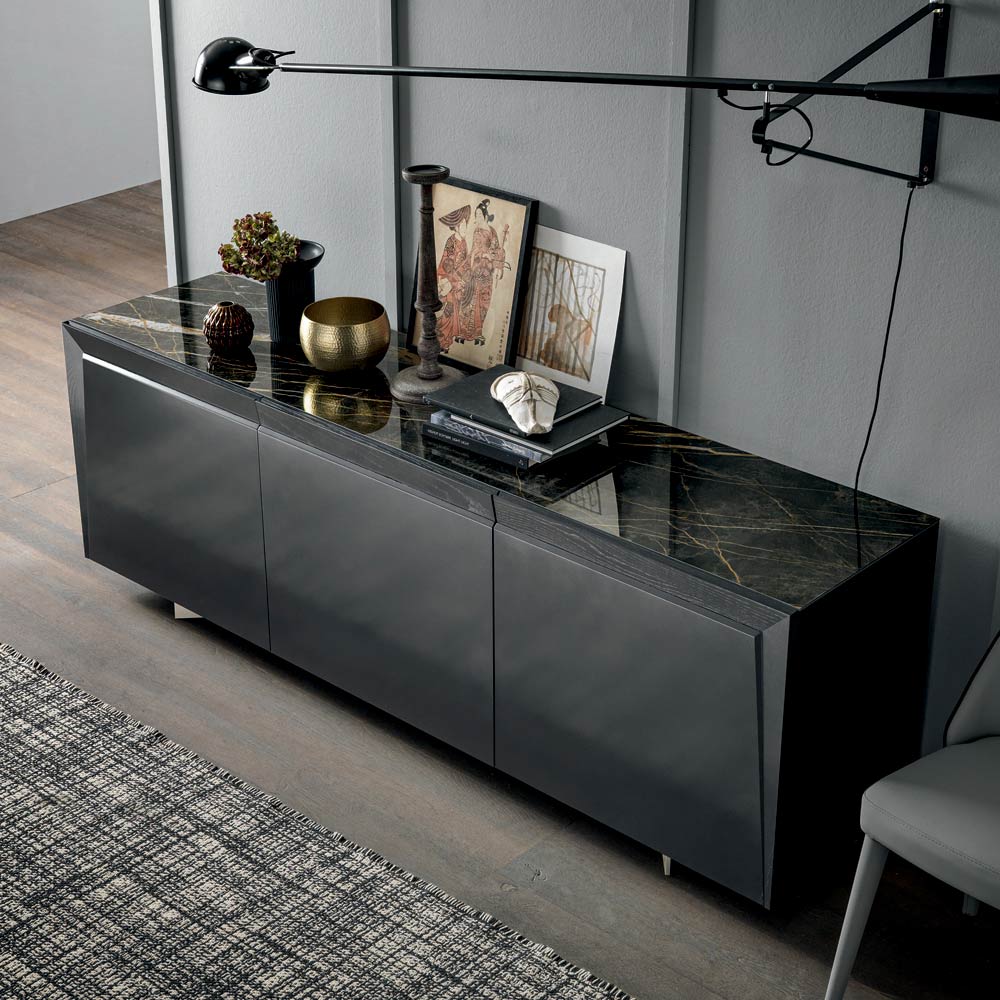 Madia in mdf a 3 ante con bordo inclinato e piano in ceramica lucida made in Italy.