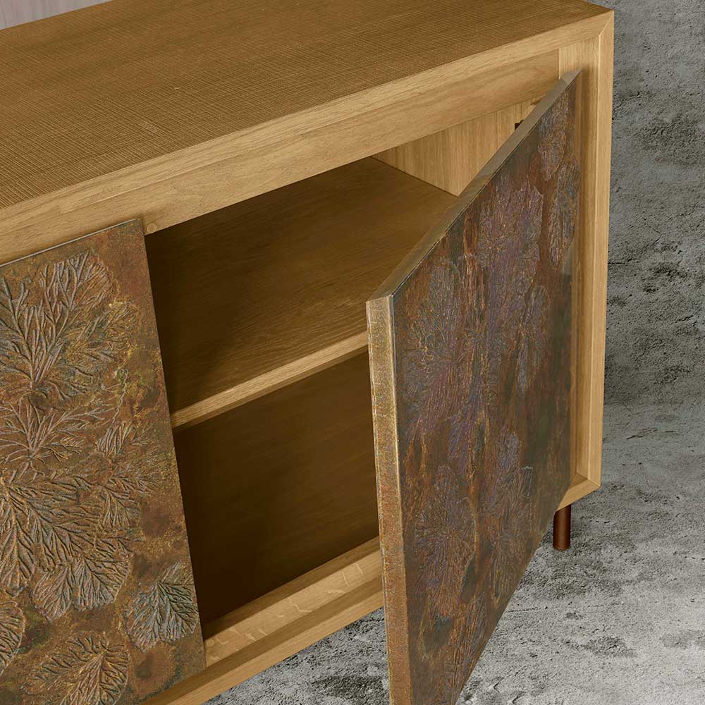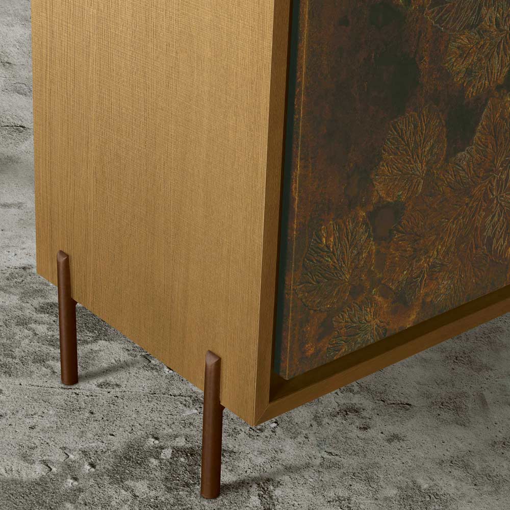 Madia da soggiorno in legno con basamento in legno Made in Italy