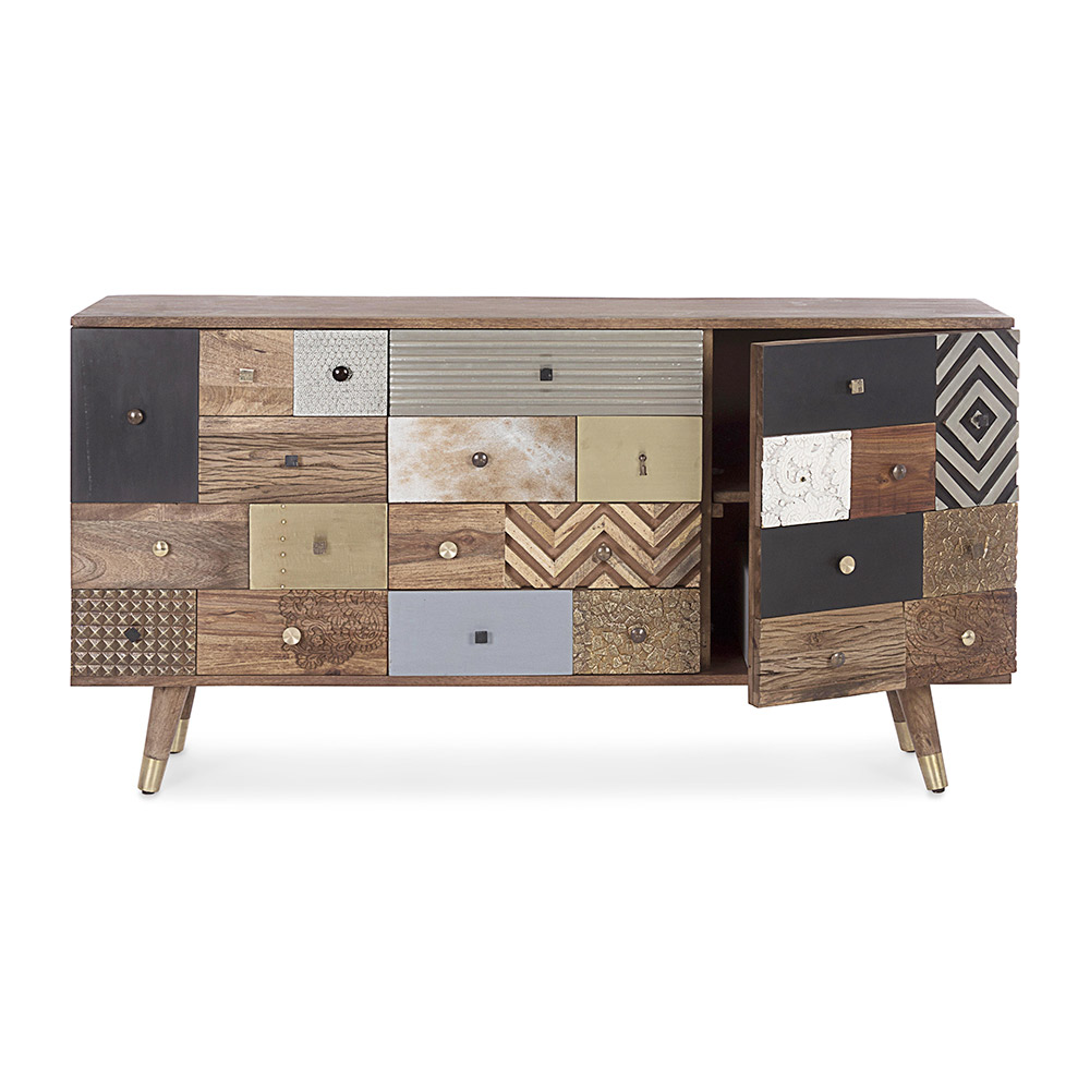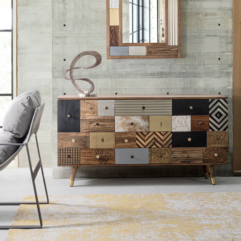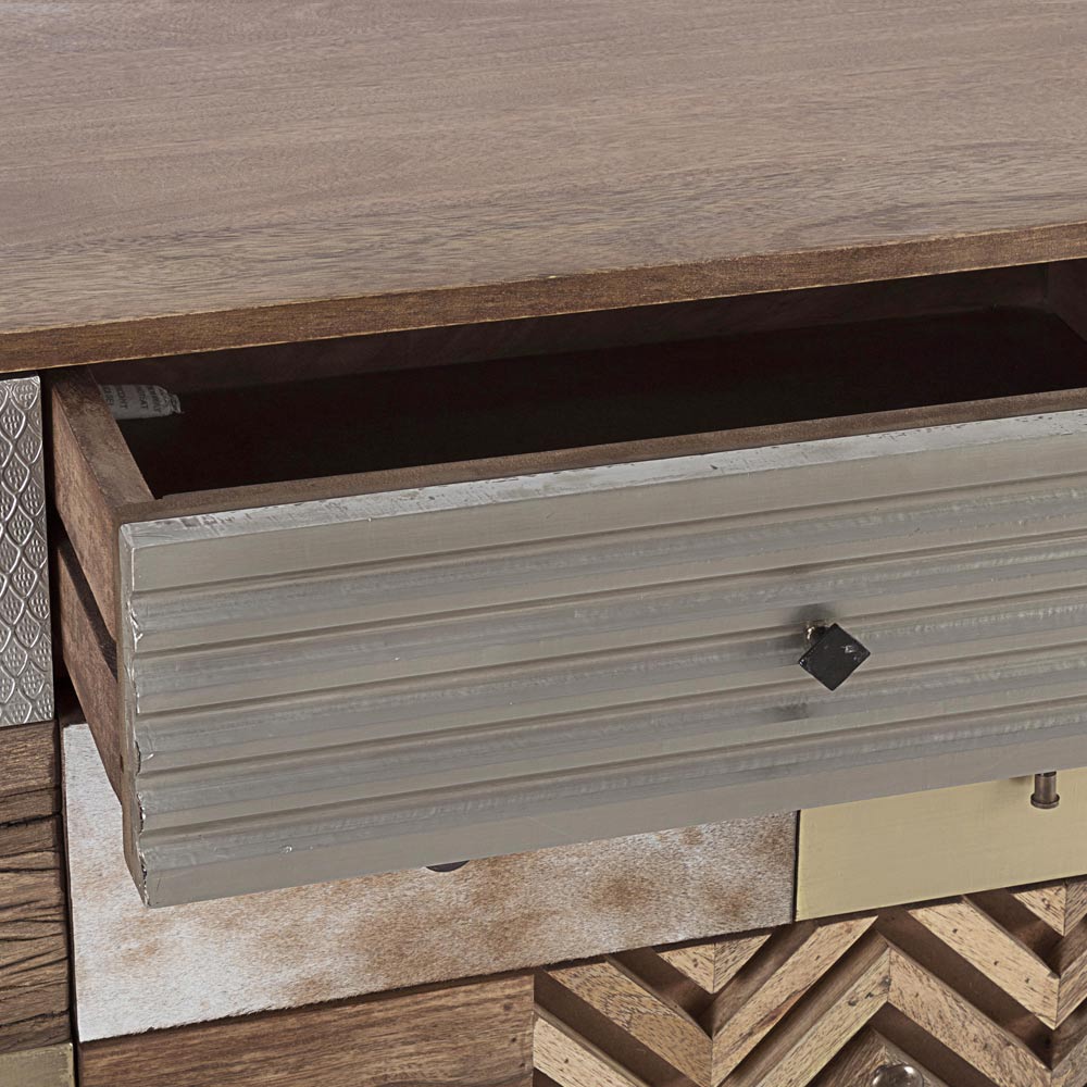 Mobile madia in legno di mango a 2 ante e 4 cassetti stile etnico.