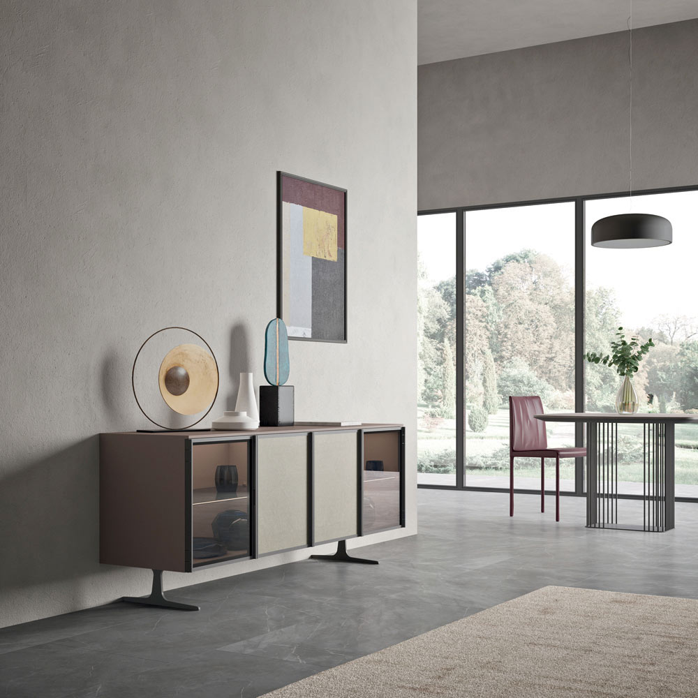 madia per il soggiorno presenta una struttura a 4 ante realizzata in laccato opaco terra con le