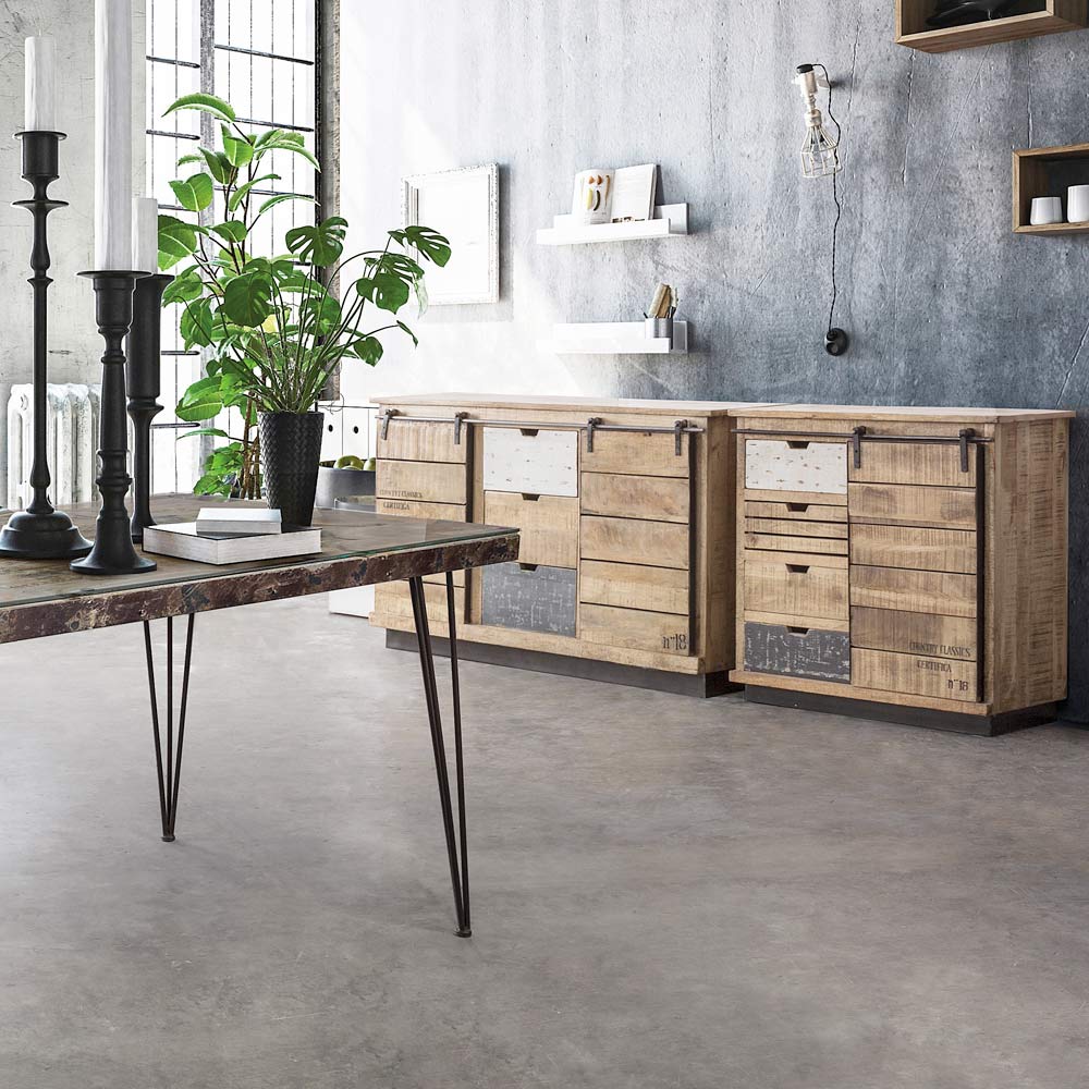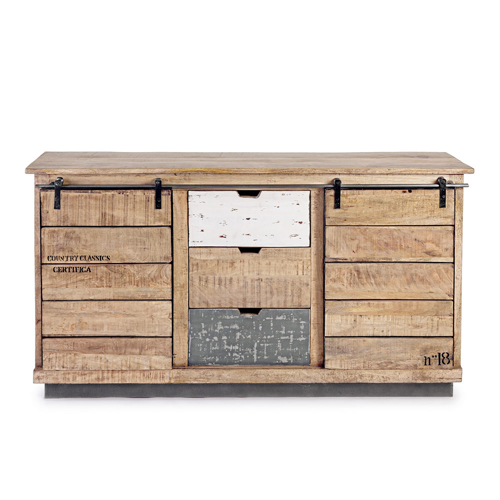 Madia in legno di mango, acciaio a 2 ante e 3 cassetti.