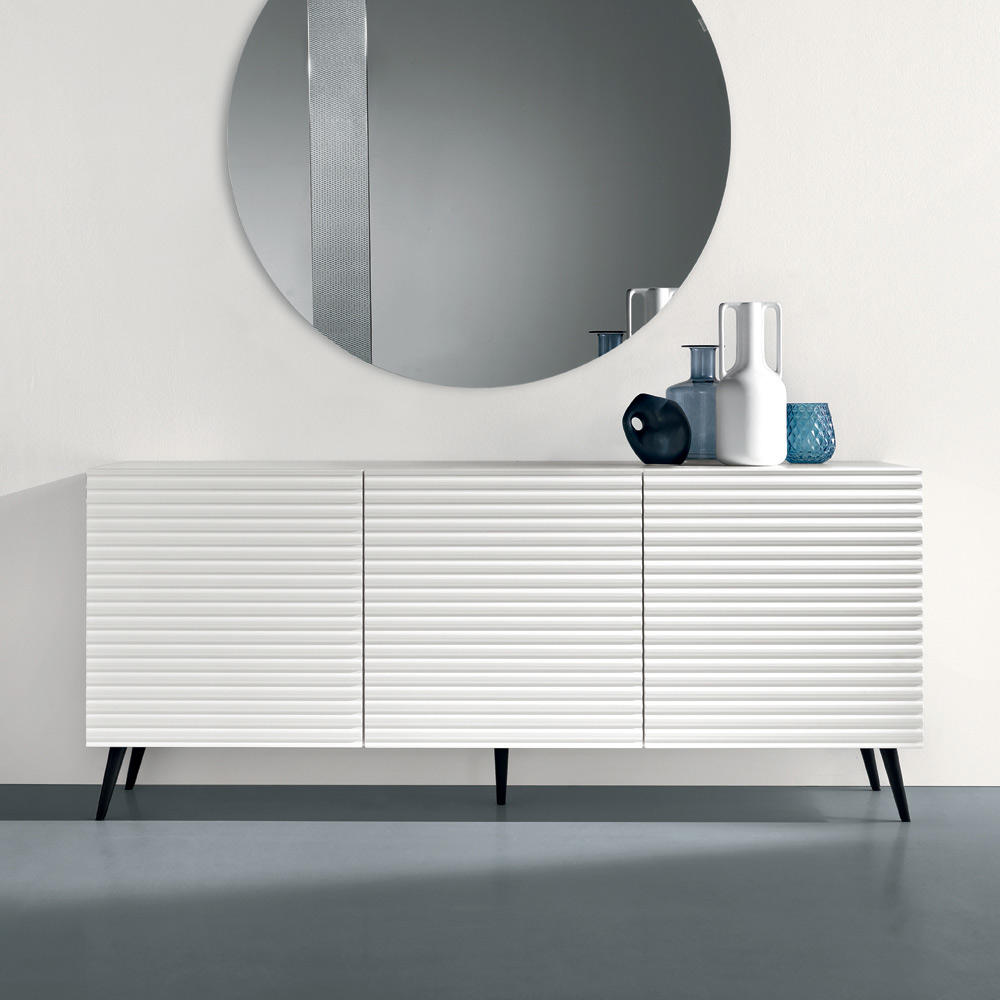 Elegante madia di design Made in Italy, ideale per arredare con stile il soggiorno o la zona living. Il suo design contemporaneo si distingue per un’estetica pulita e raffinata, capace di valorizzare la parete con discrezione e personalità.