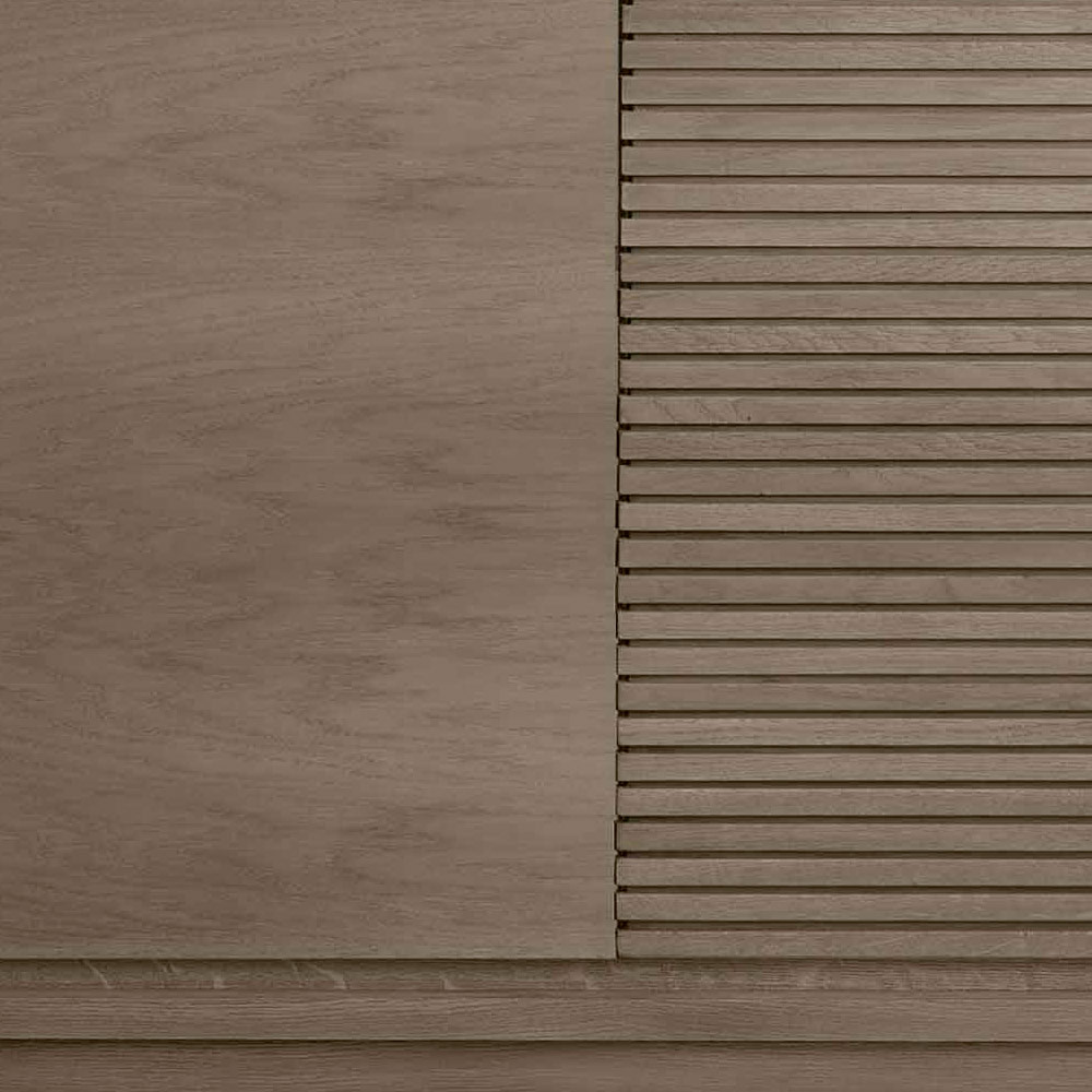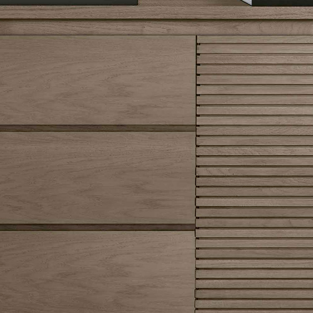 a doghe orizzontali che dona movimento e carattere alla superficie. Il suo stile essenziale la rende ideale per ambienti moderni e minimal, ma anche per spazi più classici dove aggiunge un tocco di