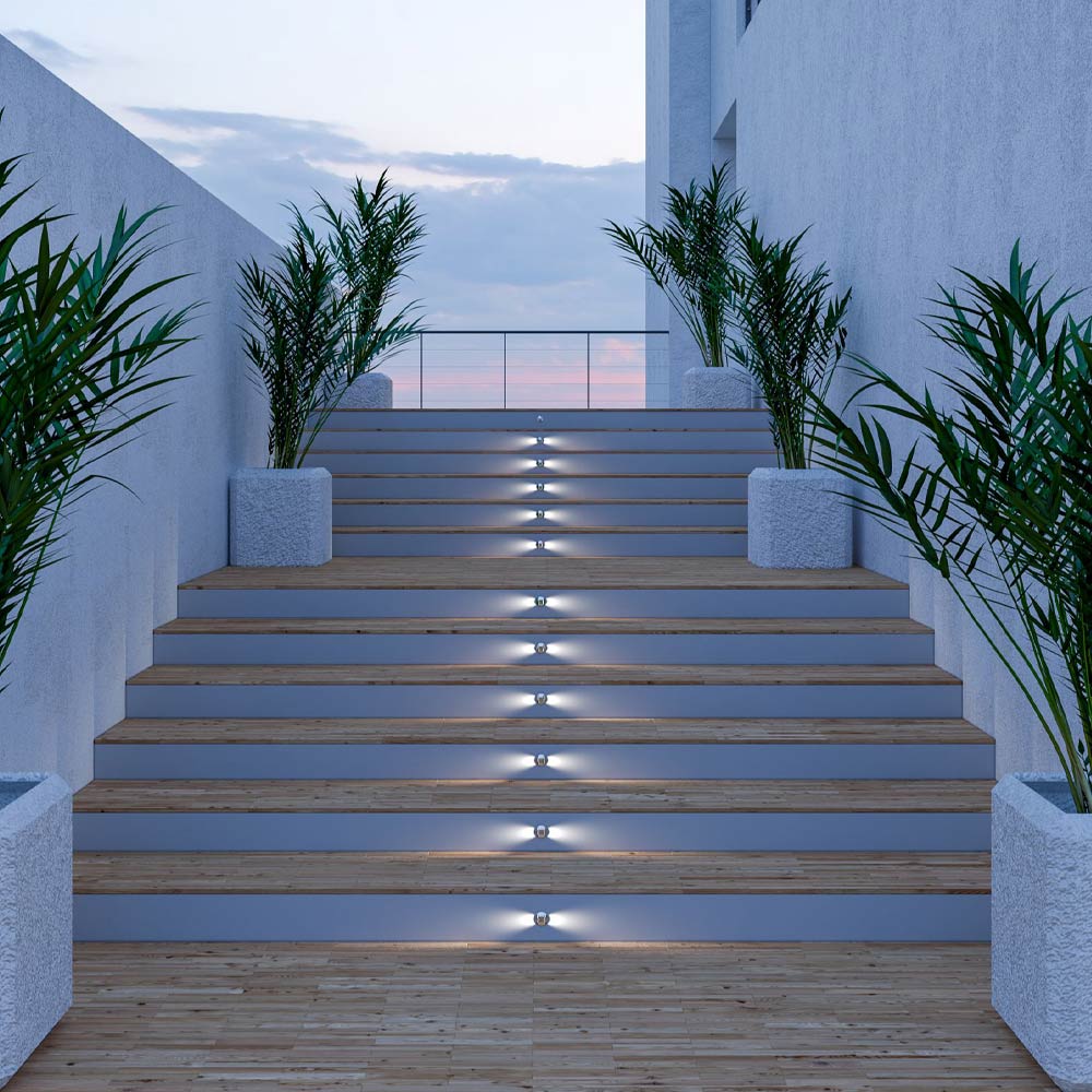 Proiettore faretto da esterno con struttura ad incasso rotonda completa di LED 2W realizzato in acciaio inox. Un elemento funzionale dell'illuminazione tecnica che offre una resistenza ottimale e un design minimale ideale per segnalare e illuminare spazi outdoor come corridoi, entrate, vialetti, scale o terrazze. Il risultato è un complemento di alta qualità e particolarmente funzionale che offre un'atmosfera accogliente e mette in risalto zone outdoor all'interno di ambienti domestici o contract.
