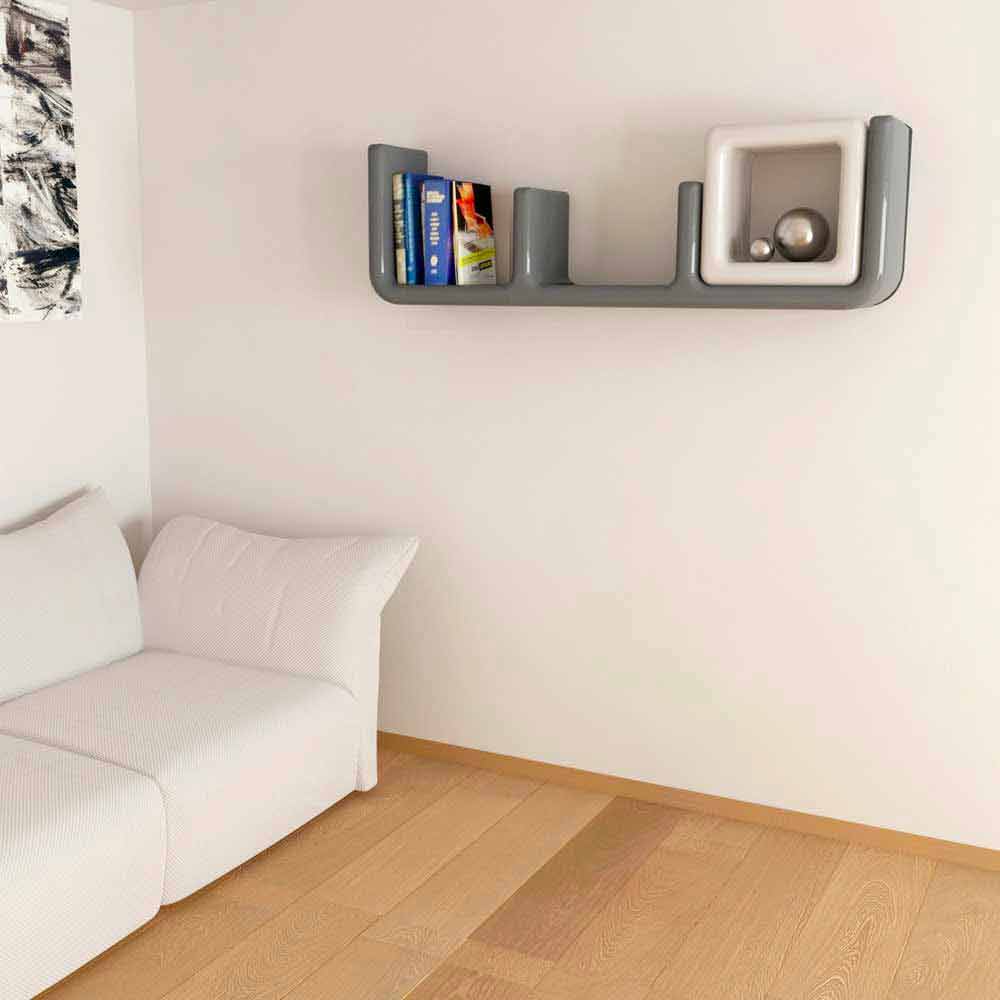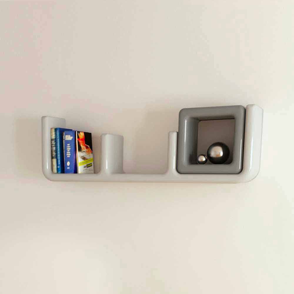 La mensola libreria Atlante si compone di tre vani utili con l'aggiunta di un accessorio multiuso che, all'occorrenza, moltiplica lo spazio dove riporre libri e oggetti.