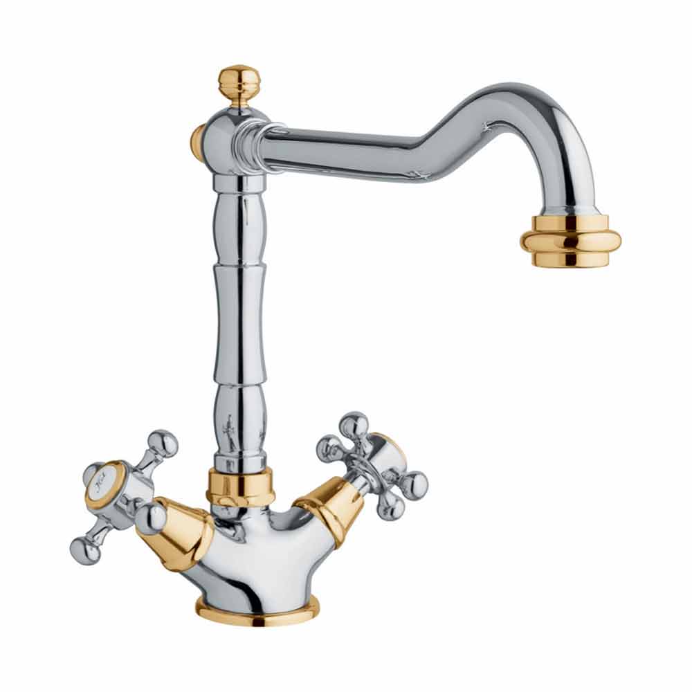 Miscelatore monoforo per lavabo cucina in ottone design classico Made in Italy.