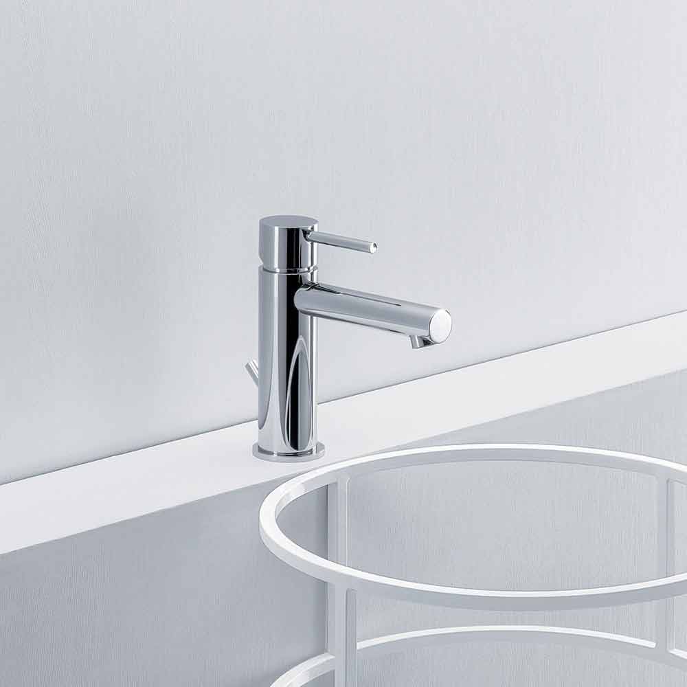 Miscelatore lavabo bagno in ottone cromato design moderno Made in Italy.